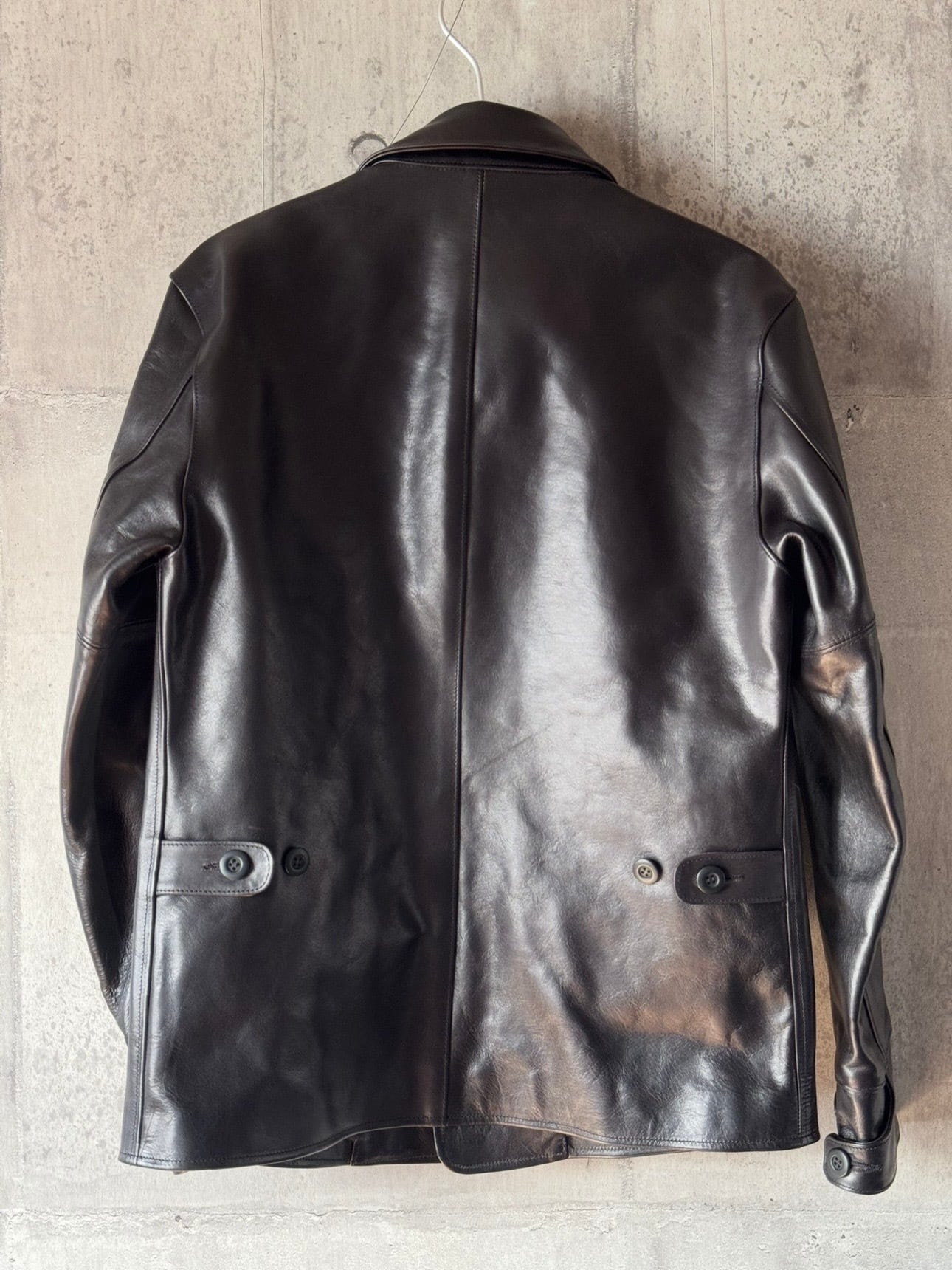 フロントとバックを贅沢に“一枚革”で仕上げた、無駄のないシンプルなデザインの1着。