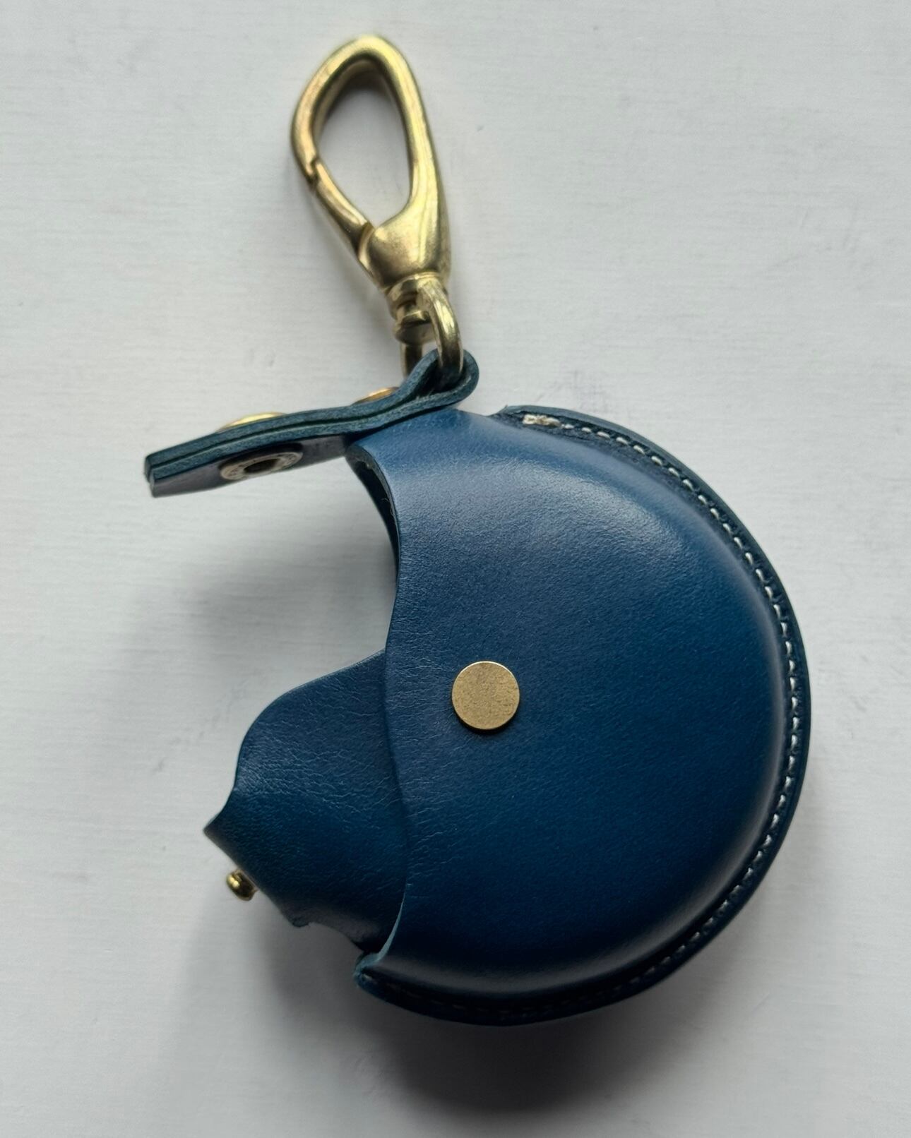 半月型の革を丸くなるように2つ組み合わせてあり、