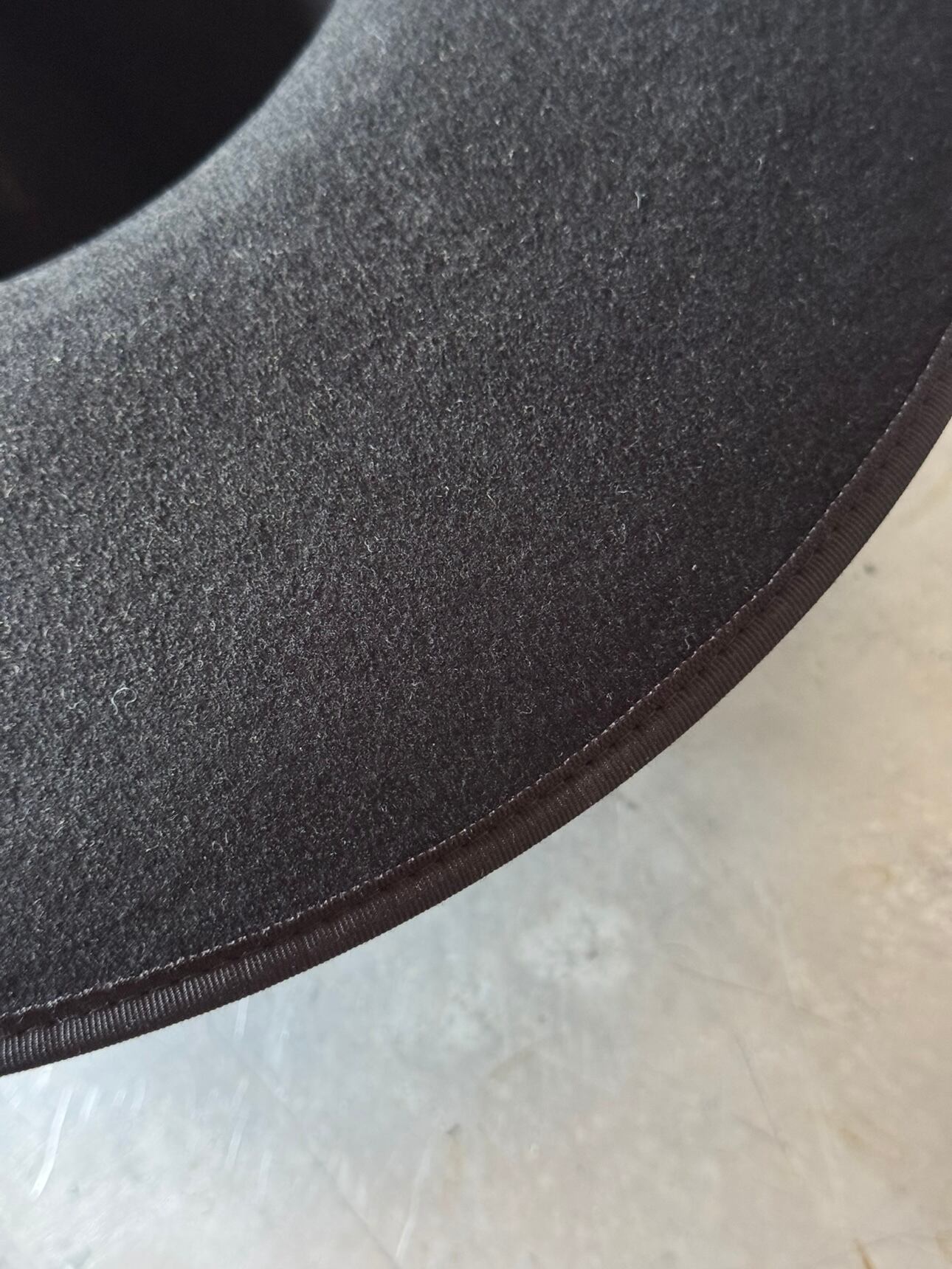 ブリムは11CMロングのへりとり(ブリム周りにパイピング処理)仕様。