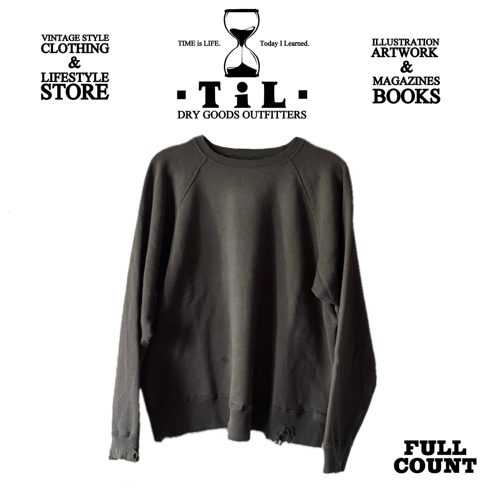 FULLCOUNT 3769 Fading Raglan Sleeve Sweatshirt (BLACK) ダメージ加工