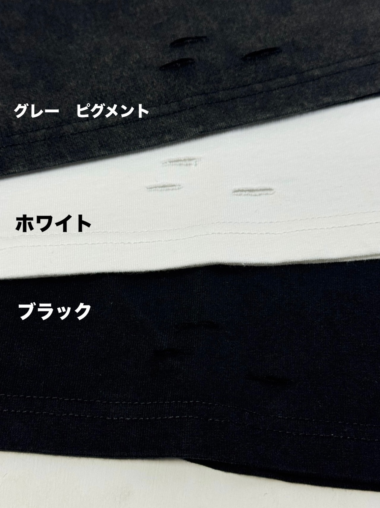 また、本製品はダメージ加工を施し、穴を開けたデザインになっております。