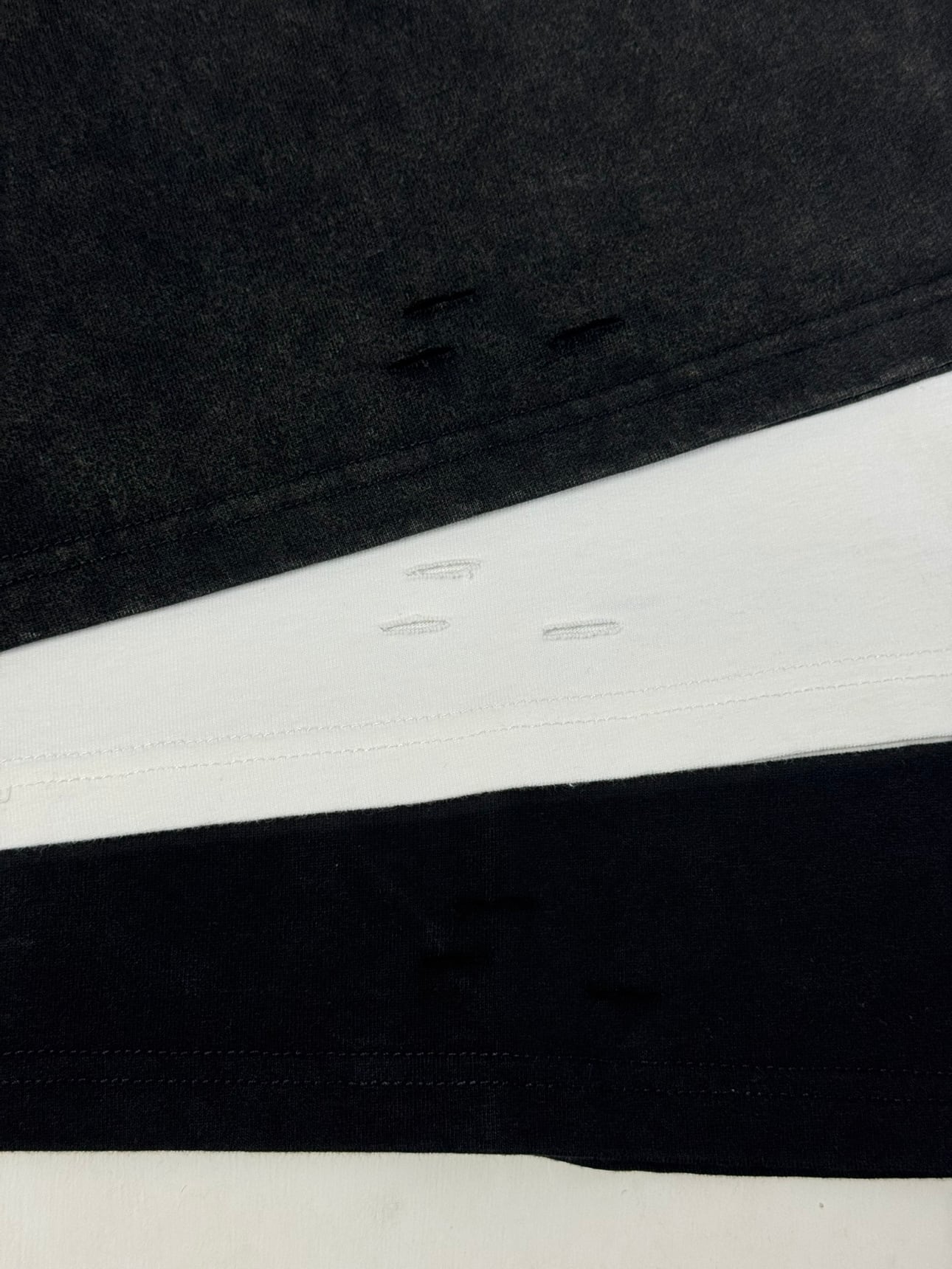また、本製品はダメージ加工を施し、穴を開けたデザインになっております。