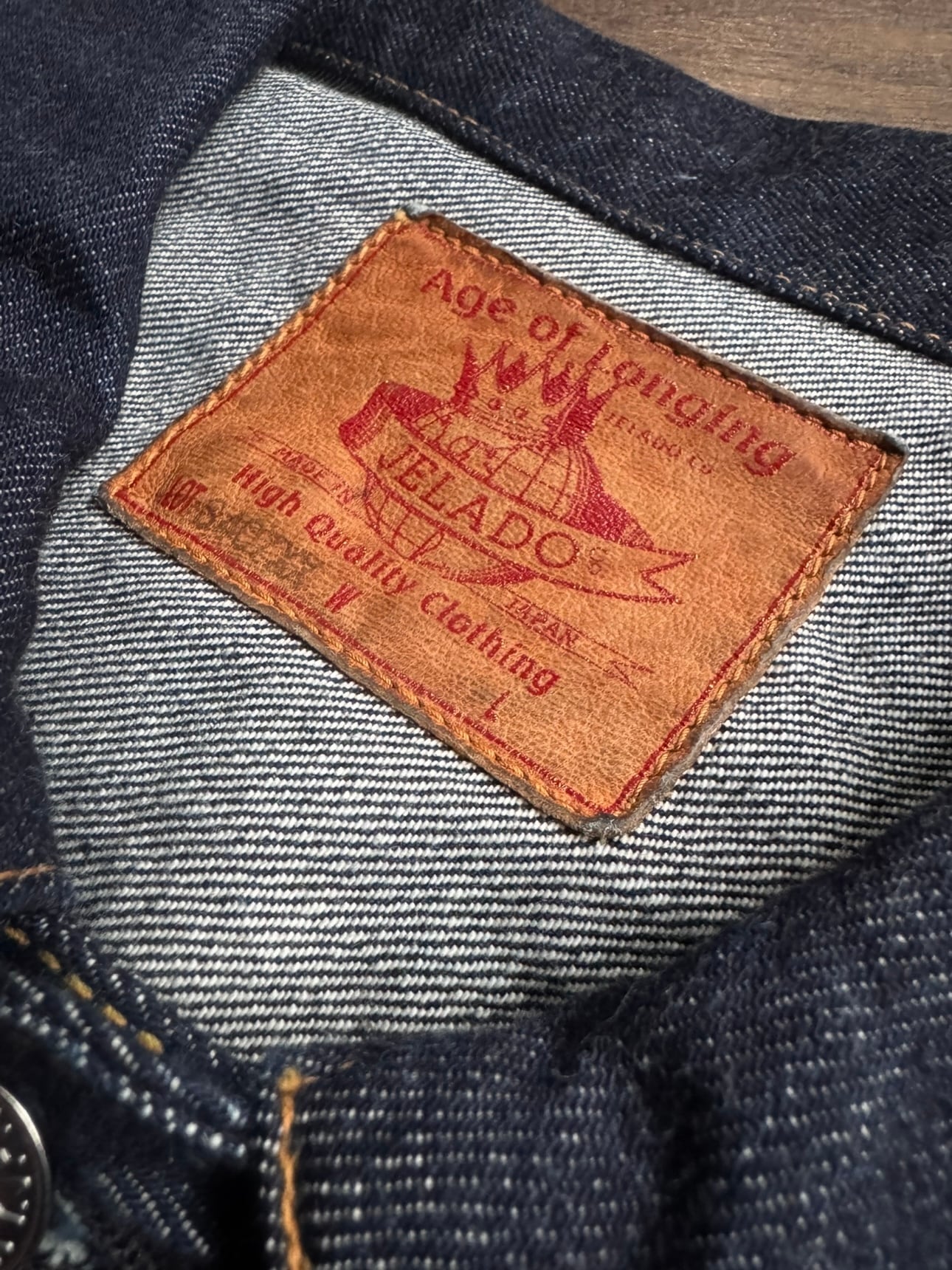 ロープ染色はデッドストックを参考に深みのあるピュアインディゴで染め上げ、TOYODA G3織機で経68本×緯47本の打ち込みを施し、しなやかで滑らかな穿き心地を実現しました。デザインは、弊社所有のS506XX初期型をベースに、当時の大戦モデルの雰囲気を忠実に再現。通常ラインで使用される刻印入りの付属を再現し、ポケットにはフラップを付けず、シンプルな1stモデルの仕様を踏襲しています。30年代から使用されていたリベットの在庫をそのまま流用したという設定のもと、「JELADO Co」の"o"を小文字にした特注リベットを製作。尾錠も30年代のバックルを型から再現し、鉄製で仕上げました。