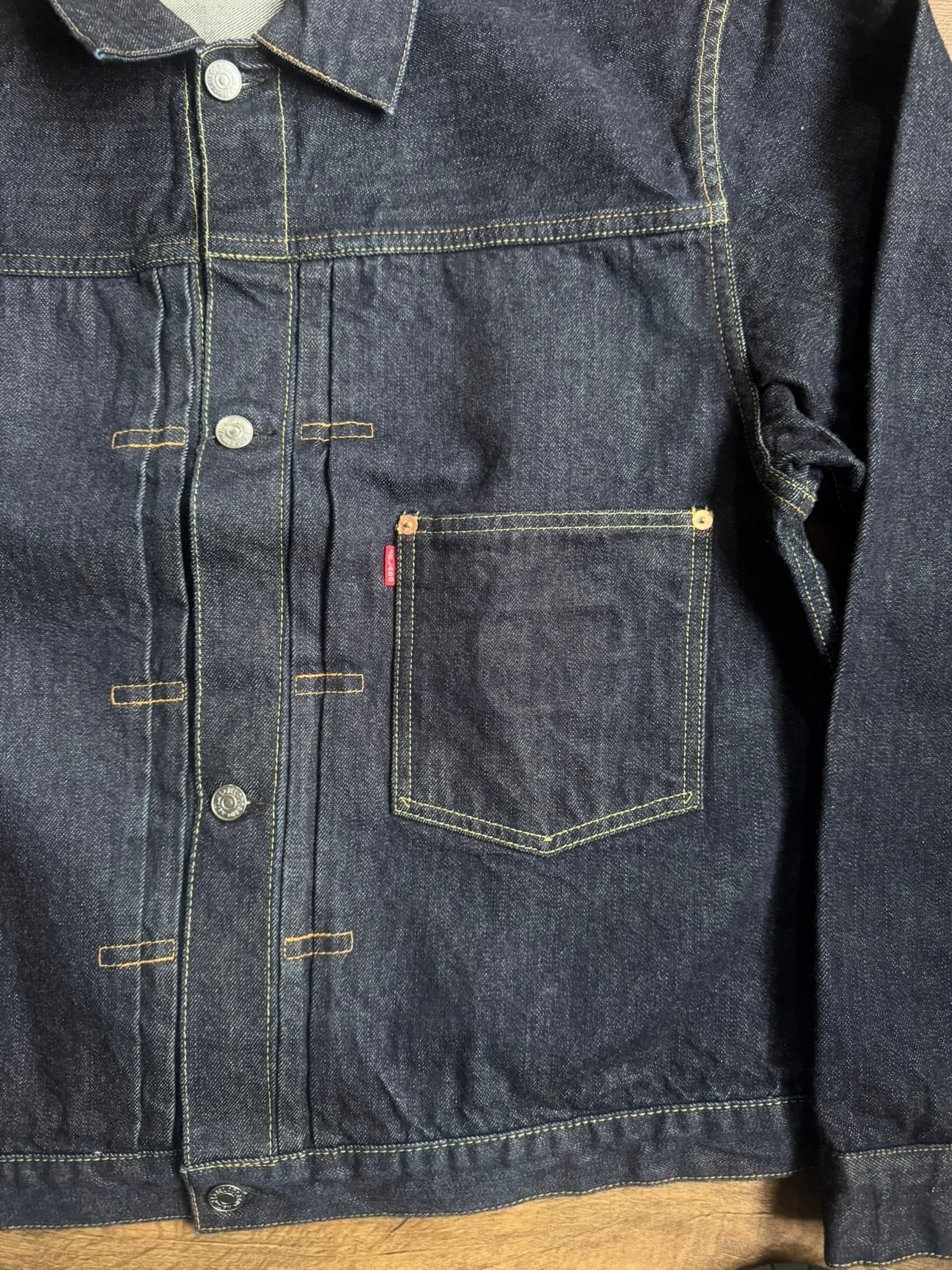 また、一部のダブルステッチにはヴィンテージの個体を再現したレインボーステッチを採用。着込むほどに奥行きのある色落ちが生まれ、ワンウォッシュでは味わえない独特の風合いを楽しめます。デッドストックの解析から生まれた、現代で再現可能な最高峰のデニムジャケット。この究極の一枚をぜひ体感してください。