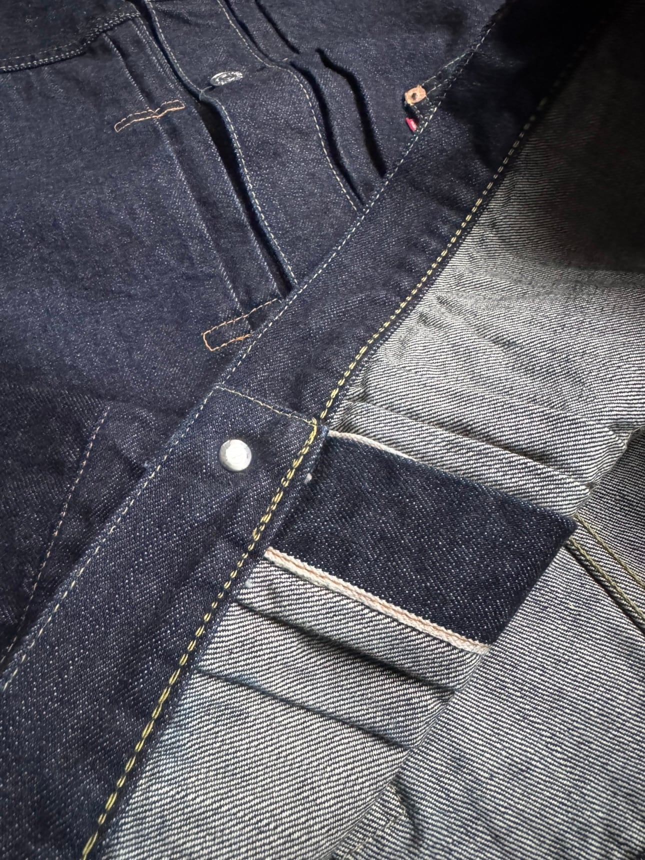 また、一部のダブルステッチにはヴィンテージの個体を再現したレインボーステッチを採用。着込むほどに奥行きのある色落ちが生まれ、ワンウォッシュでは味わえない独特の風合いを楽しめます。デッドストックの解析から生まれた、現代で再現可能な最高峰のデニムジャケット。この究極の一枚をぜひ体感してください。