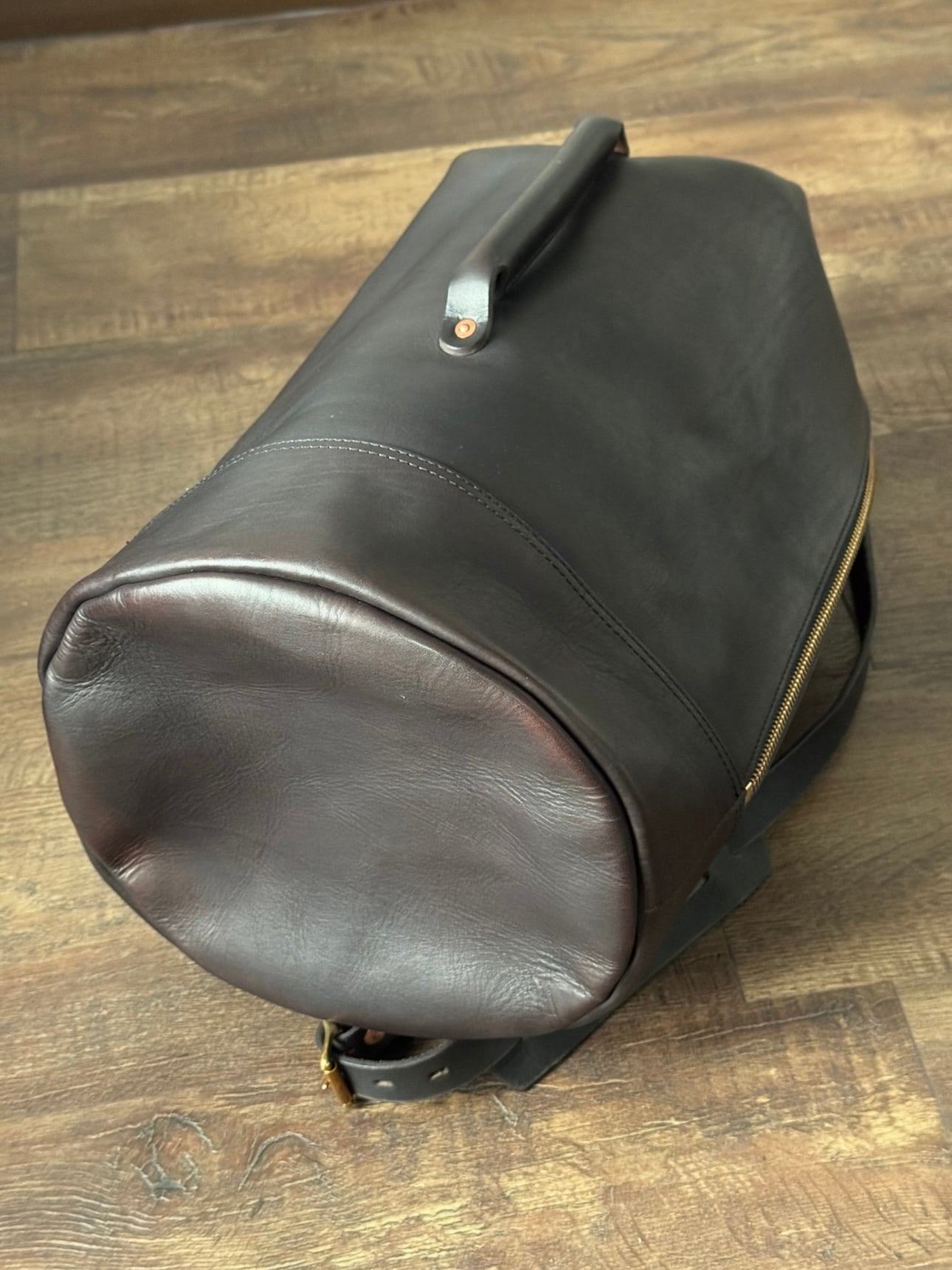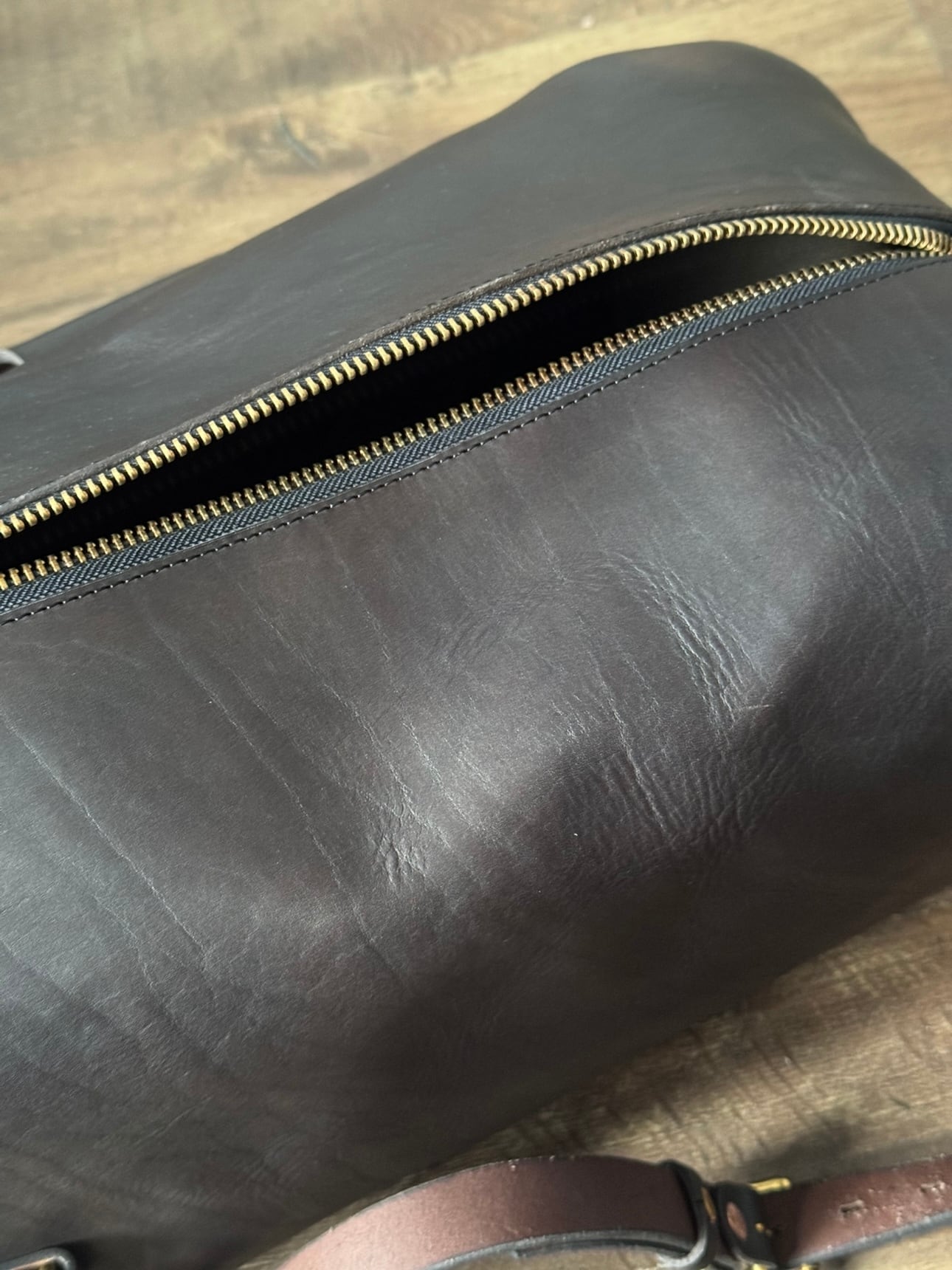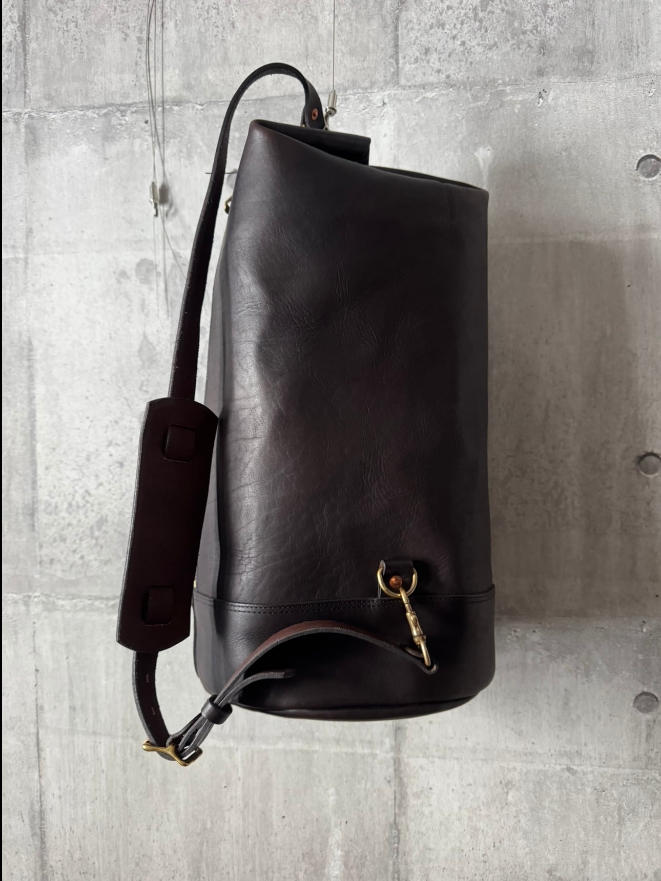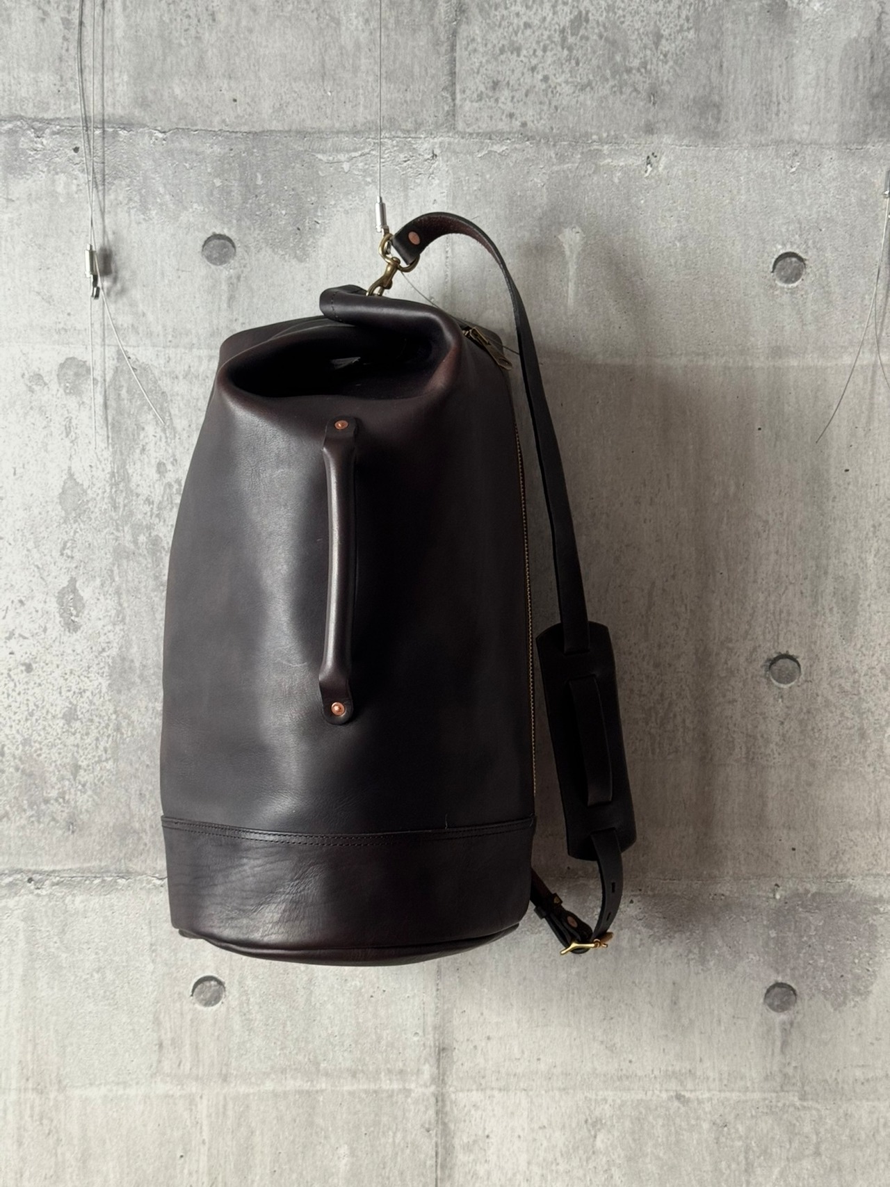 米国やヨーロッパの海軍水兵が私物を入れるために使用していた、ボンサックをモダナイズした、レザーダッフルバッグです。大容量のメインコンパートメントに、サイドのジッパーからもアクセスでき、荷物の出し入れが容易にできます。ナスカンで着脱できるショルダーがつきます。ファスナーはヴィンテージ感満載の「WALDES ZIPPER」を採用。ライナーは堅牢度に優れたキャンバスを使用。ブランドのコンセプトである「旅の道具」を象徴するアイテムです。