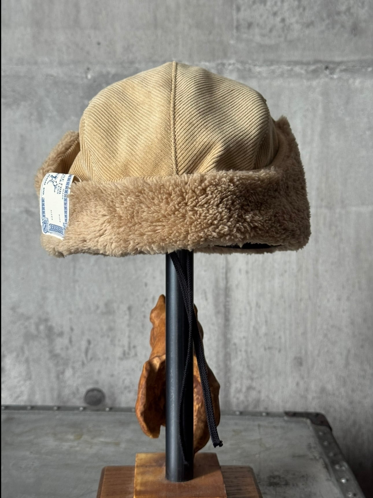 ボアのフラップを下げて耳当てとしても、上に捲って被ることも可能で、被り方でまた違った印象をお楽しみいただけます。