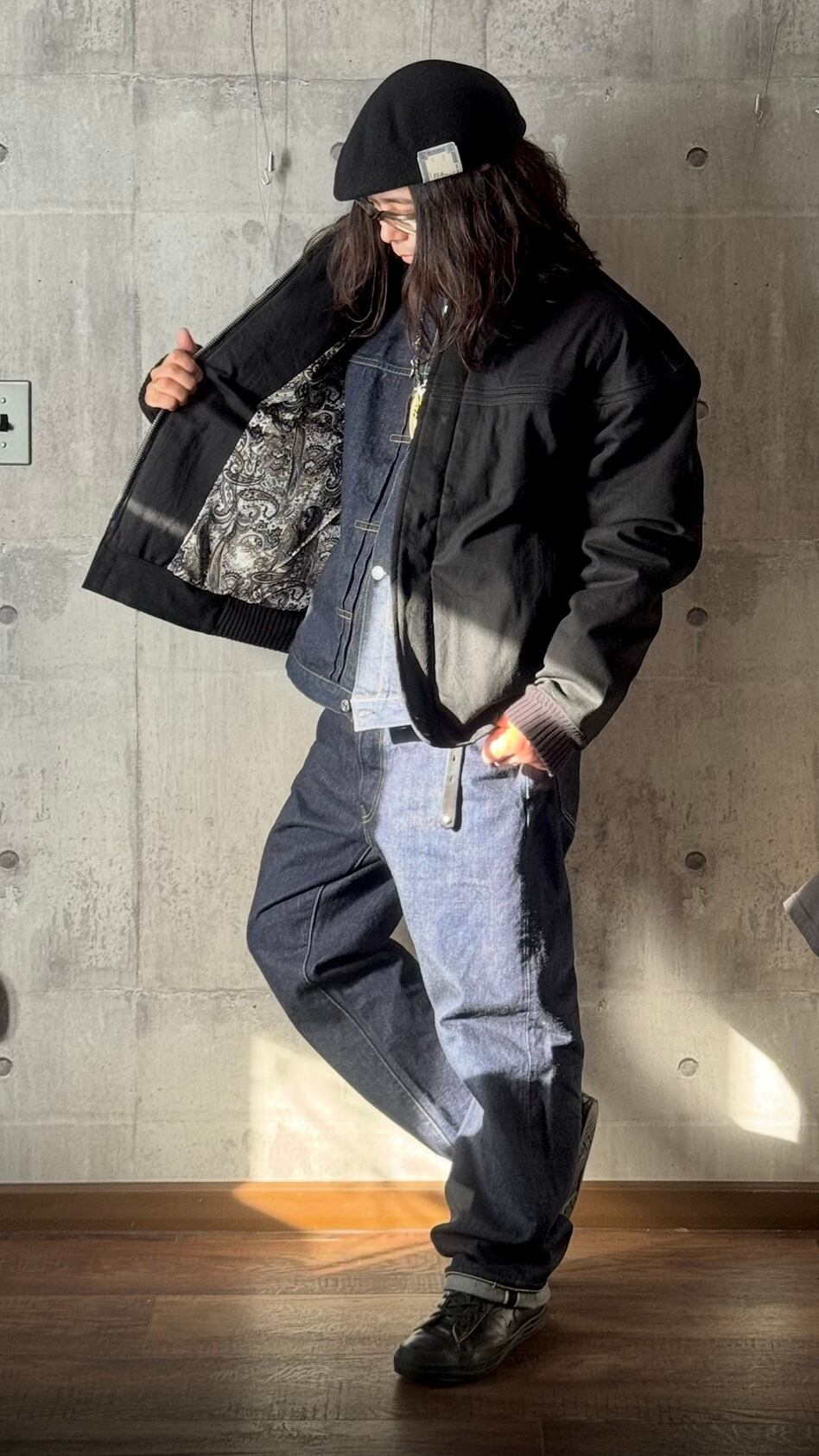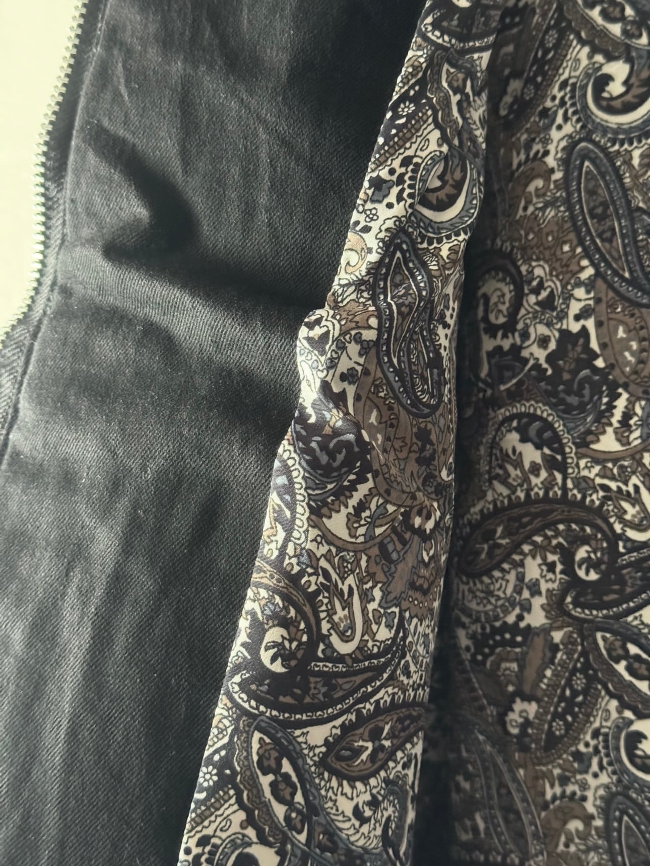 インナーには肌触り 抜群のビスコース素材に、このジャケット第二の顔とも呼べるペイズリー柄で。ファスナー付きの 2 重ポケット、迫力満点のフロントのビックジッパー等、その佇まいだけでバックボーンの奥深さを感じさせてくれる贅沢な1着です。