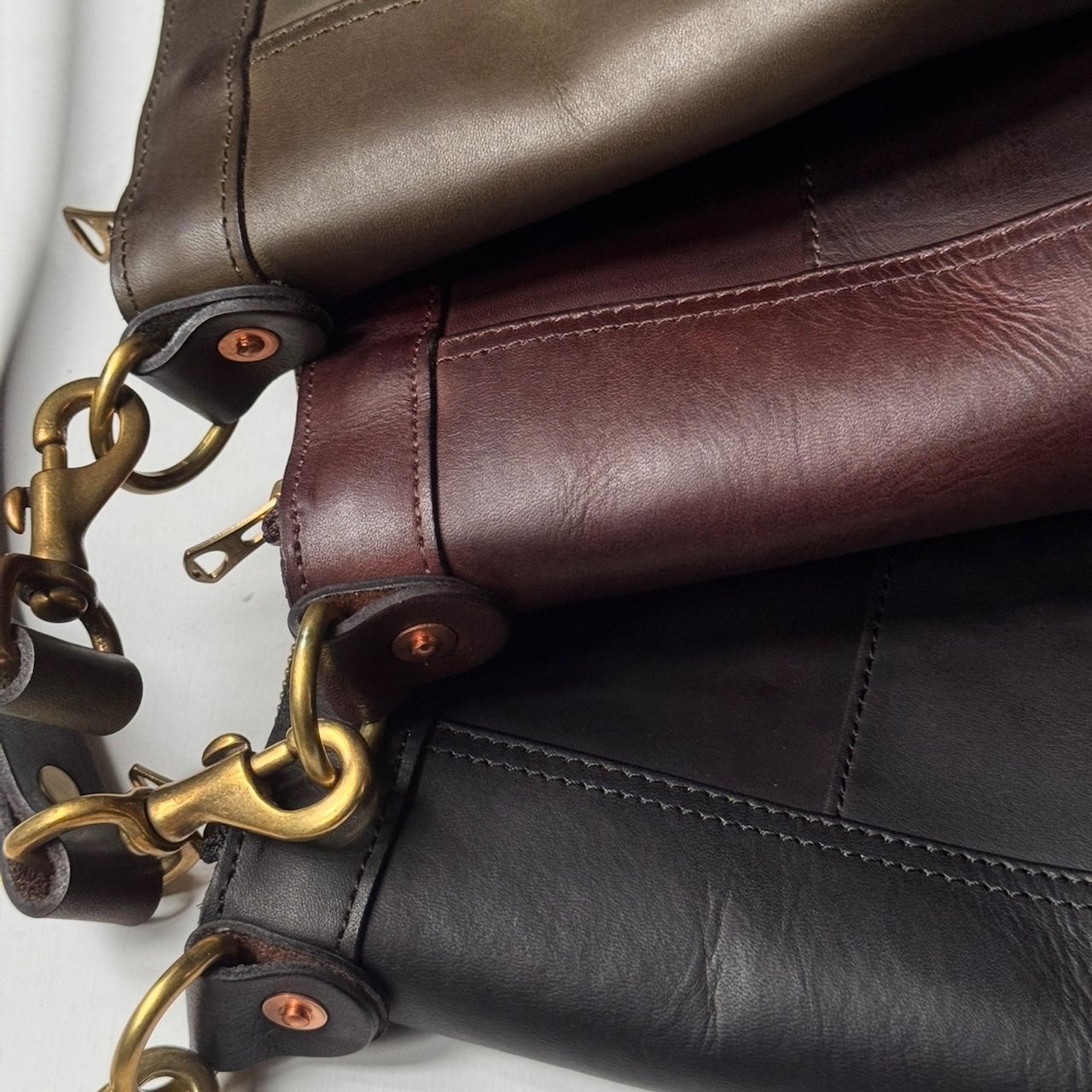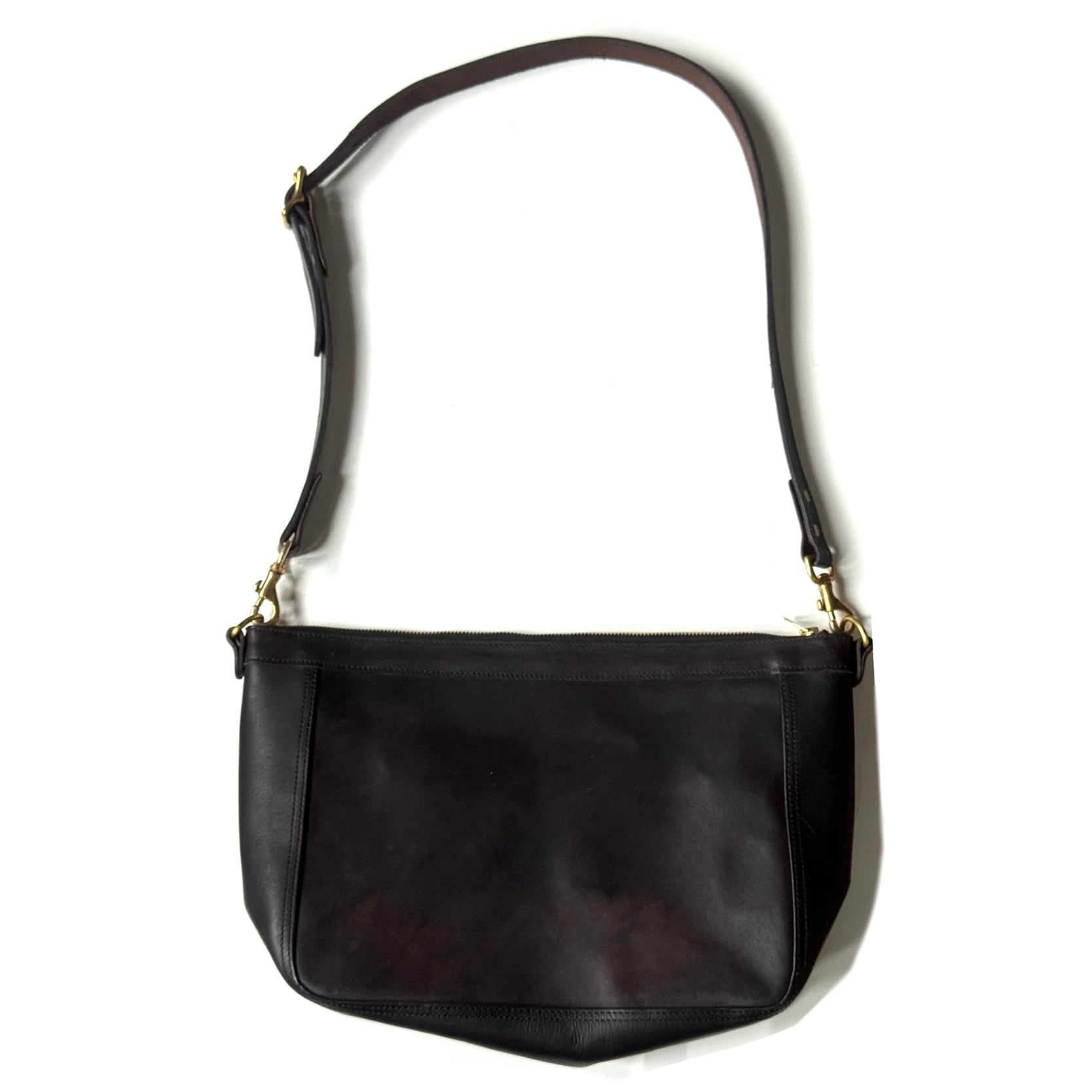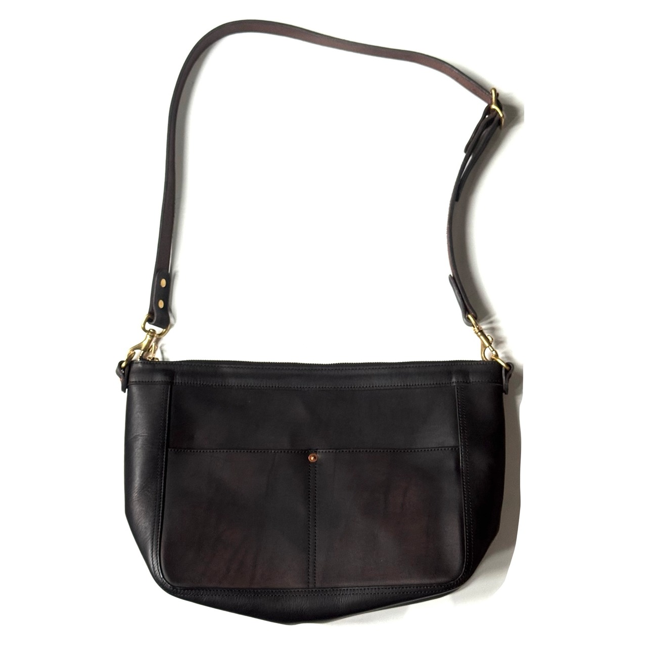 1970年代のUS ARMY(アメリカ陸軍)野戦電話を収納するためのテレフォンセットケース「TA-312/PT」をモダナイズした、レザーショルダーバッグです。ミリタリーの要素を残しながら、タウンユース仕様に仕上げました。アウトポケット、メインコンパートメントから荷物の出し入れができます。ファスナーはヴィンテージ感のある「WALDES ZIPPER」を使用。利便性の高いA4サイズ。