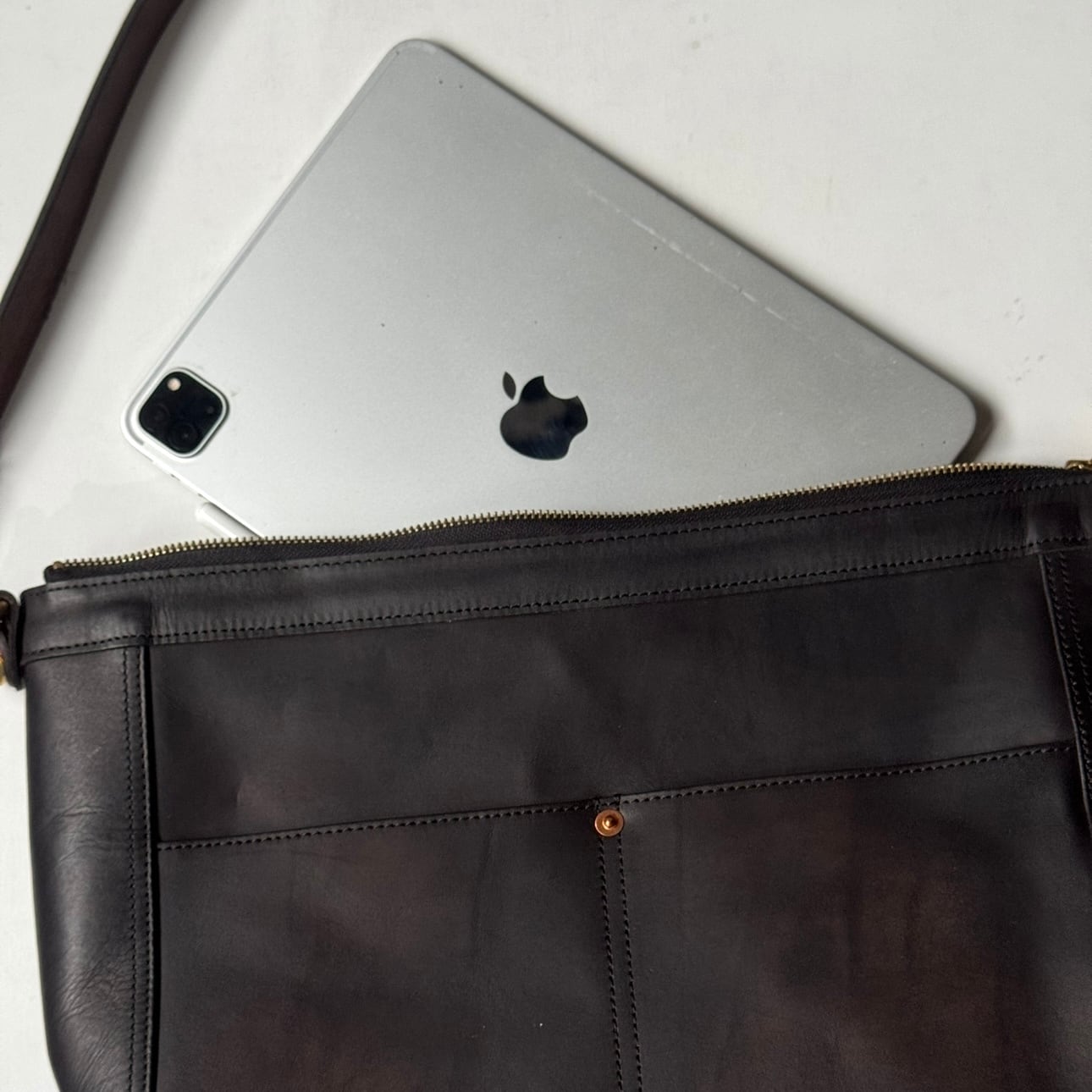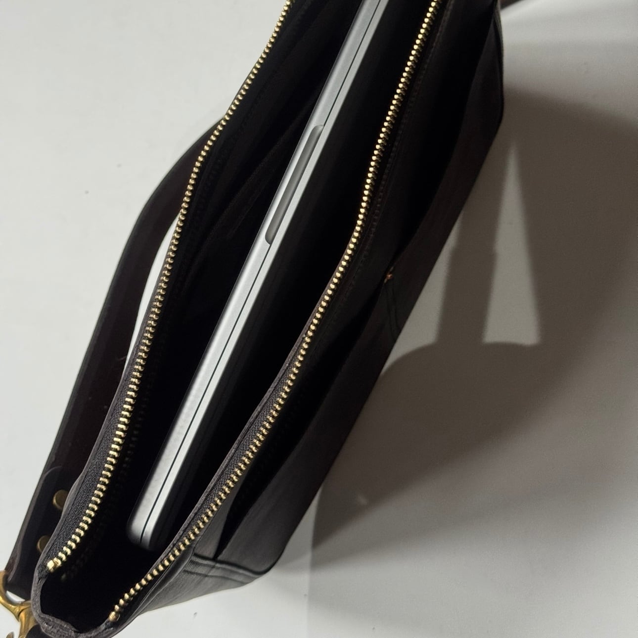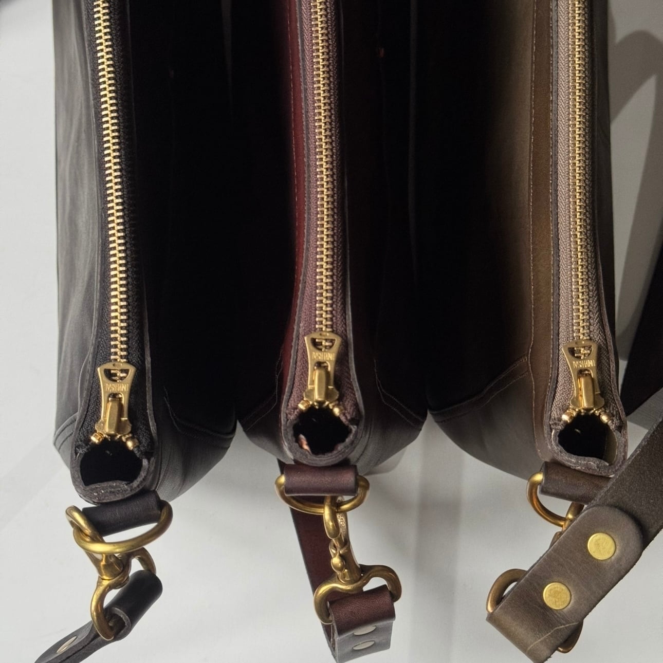 1970年代のUS ARMY(アメリカ陸軍)野戦電話を収納するためのテレフォンセットケース「TA-312/PT」をモダナイズした、レザーショルダーバッグです。ミリタリーの要素を残しながら、タウンユース仕様に仕上げました。アウトポケット、メインコンパートメントから荷物の出し入れができます。ファスナーはヴィンテージ感のある「WALDES ZIPPER」を使用。利便性の高いA4サイズ。