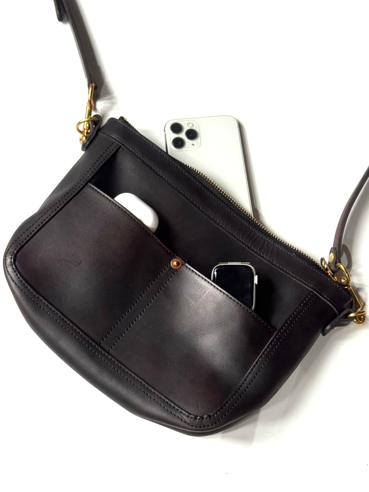 vasco "VS-313L LEATHER TELEPHONE SHOULDER BAG -SMALL" BLACK