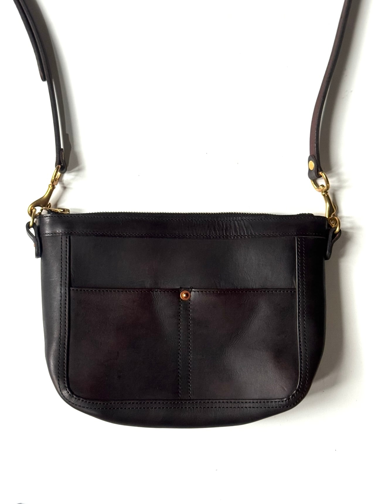 1970年代のUS ARMY(アメリカ陸軍)野戦電話を収納するためのテレフォンセットケース「TA-312/PT」をモダナイズした、レザーショルダーバッグです。ミリタリーの要素を残しながら、タウンユース仕様に仕上げました。アウトポケット、メインコンパートメントから荷物の出し入れができます。ファスナーはヴィンテージ感のある「WALDES ZIPPER」を使用。コンパクトなA5サイズ。