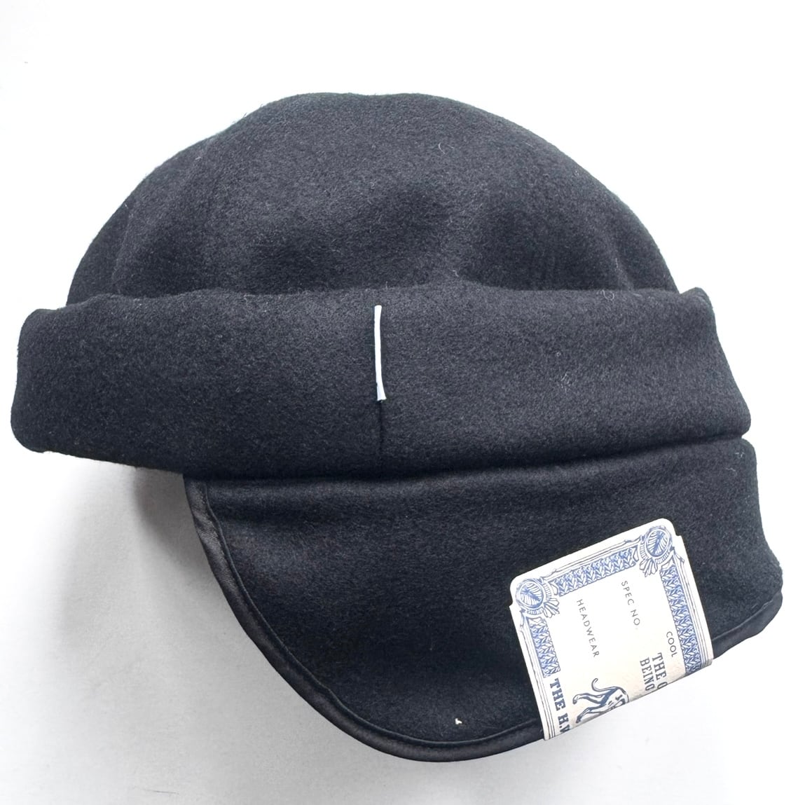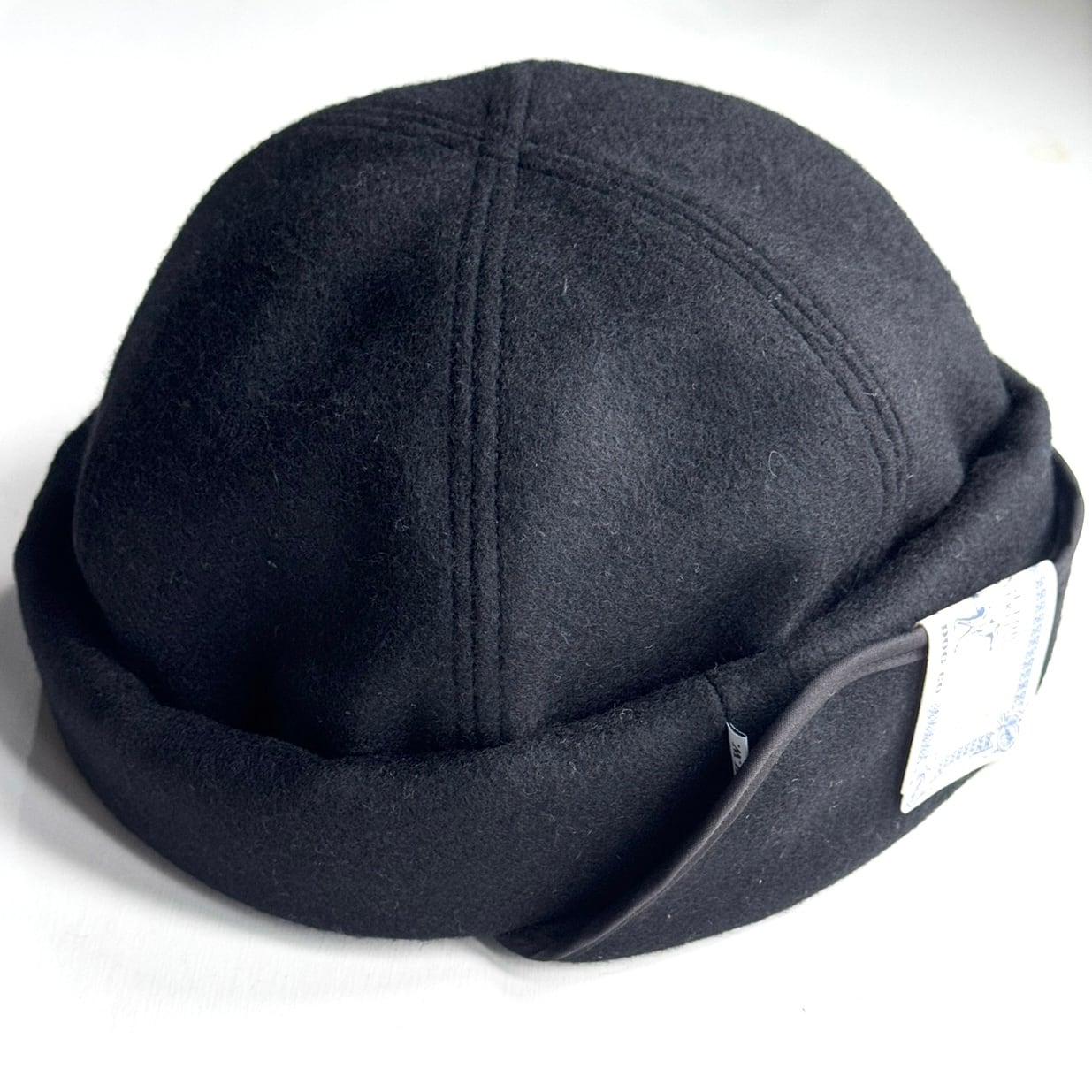 フィッシャーマンズキャップのようにブリムがなく、腰一周に綿入りベルトが付きます。