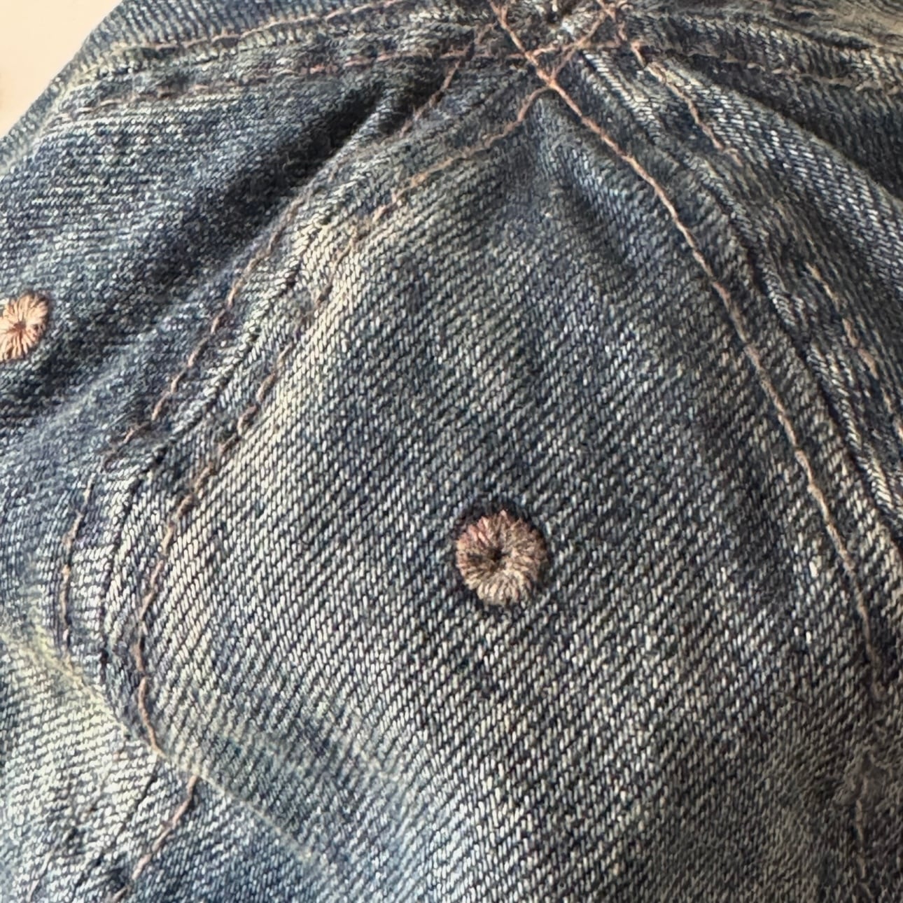 12オンスの肉厚なデニムを製品後にヴィンテージ加工し、裏地にブランケット生地を使用することで無骨な雰囲気をプラスしました。