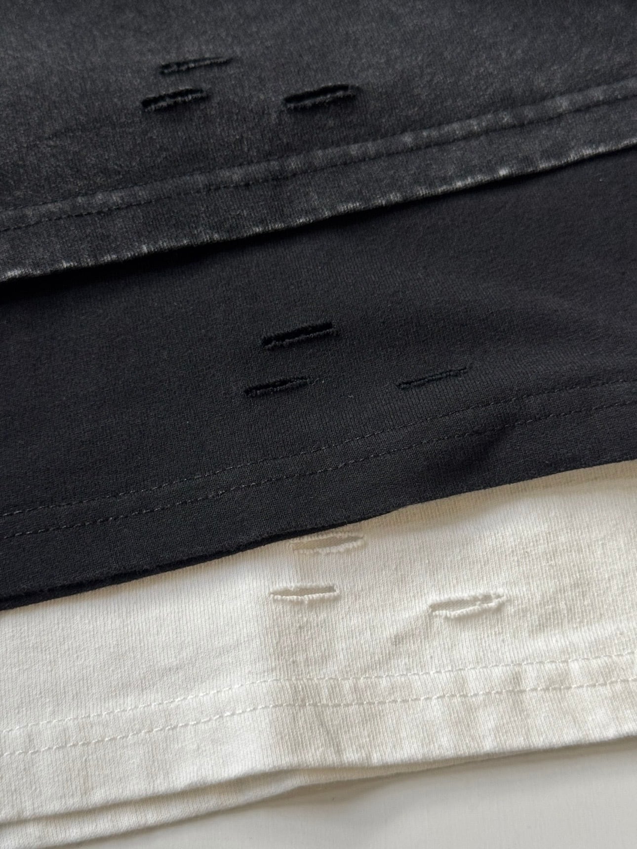 また、本製品はダメージ加工を施し、穴を開けたデザインになっております。