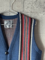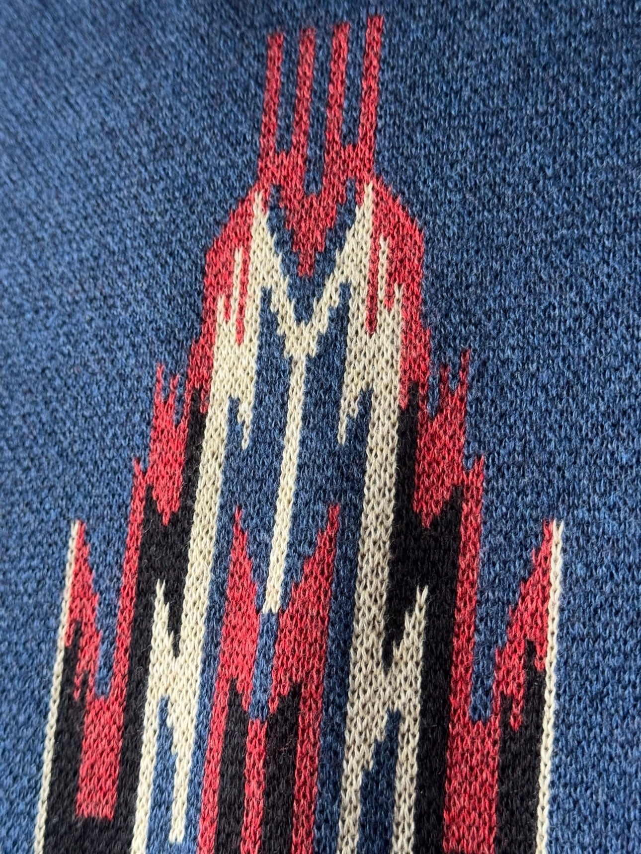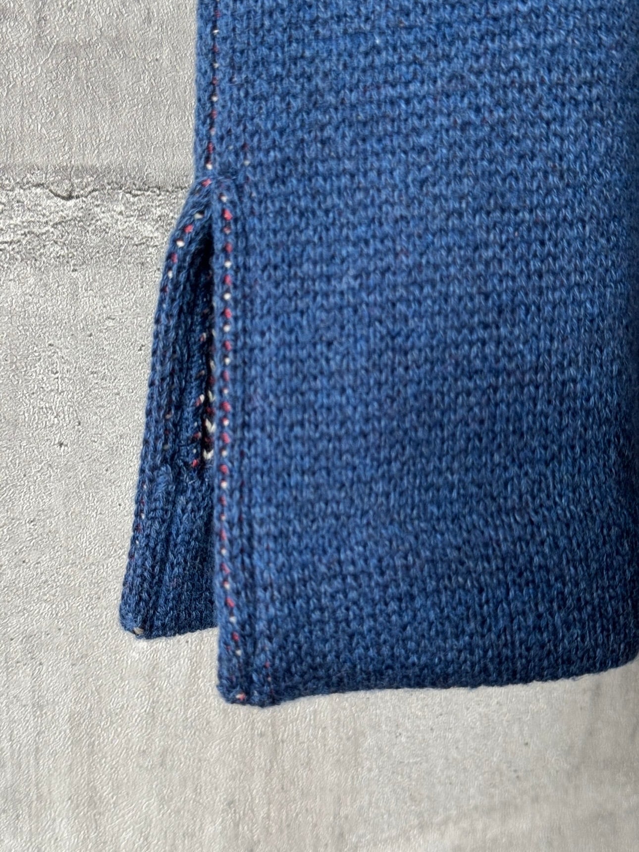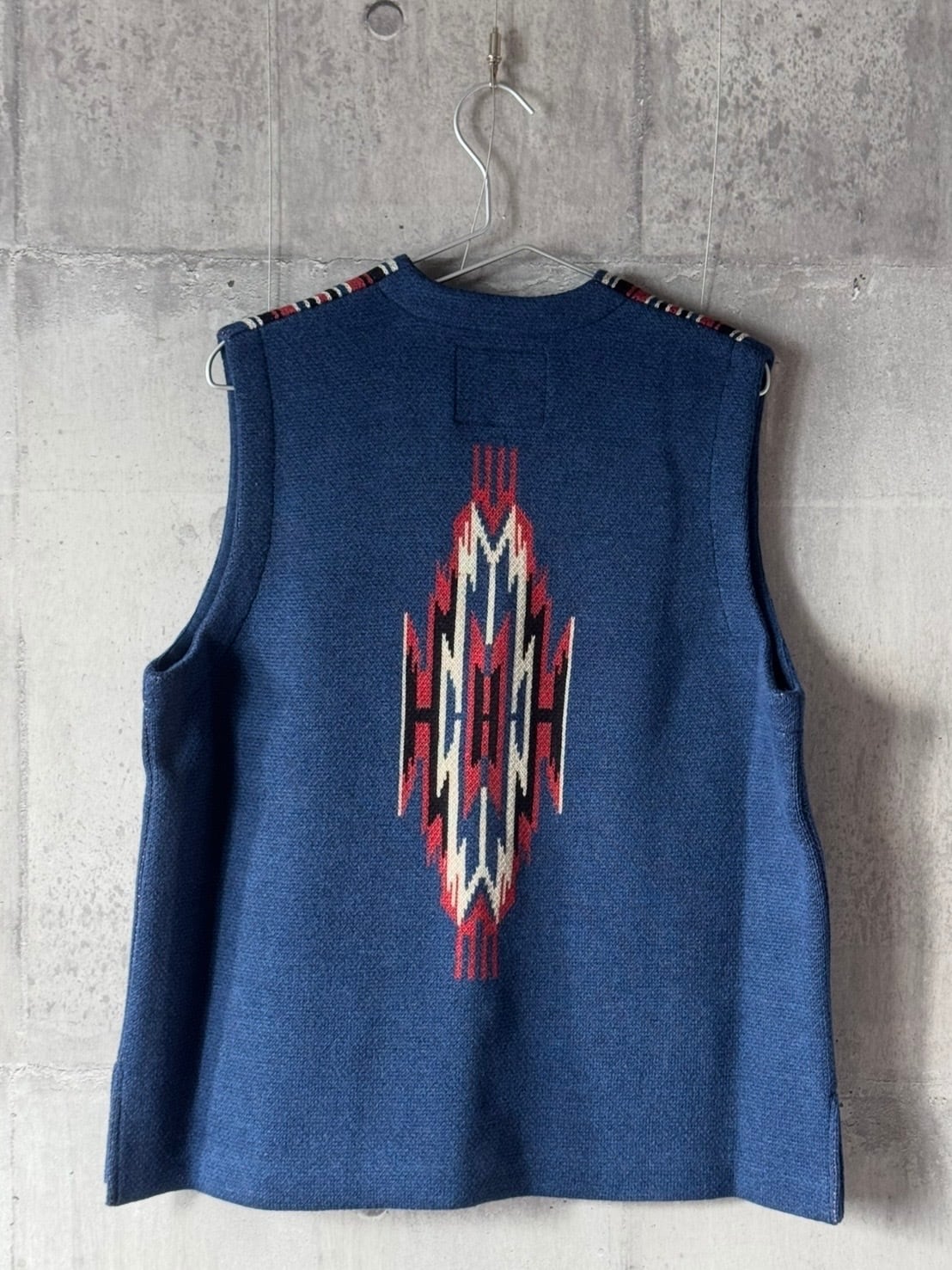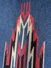 40年代以前のチマヨ生地を参考に柄を起こし、アメカジの定番であり渋カジを象徴するチマヨベストをニットで表現。ニュージーランド産ファインメリノウールとコットンを交撚した糸を使用し、ダブルジャガードで編み立てています。 膨らみのある素材