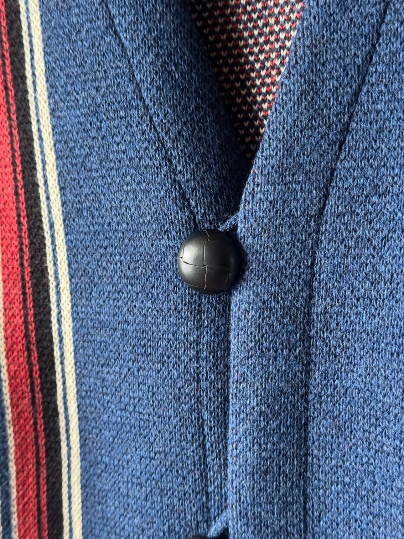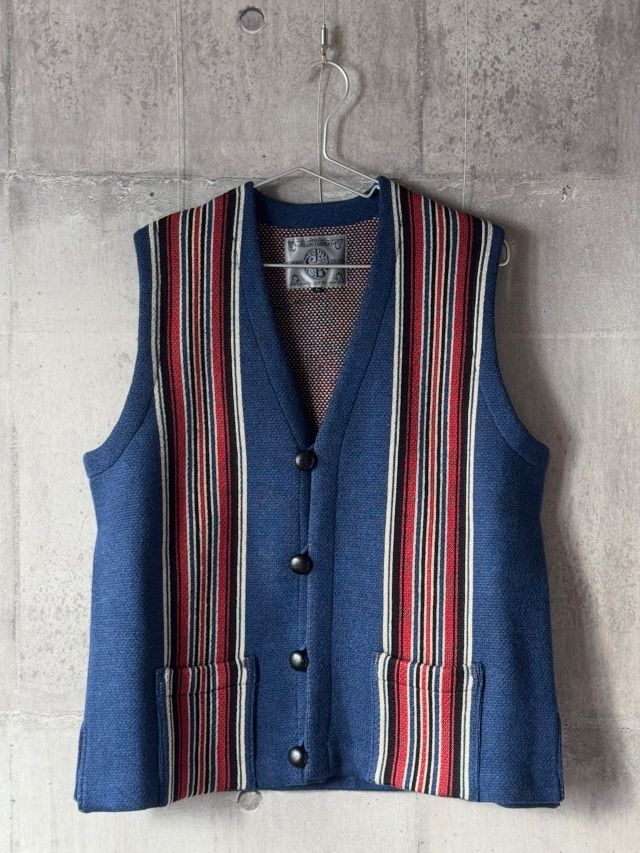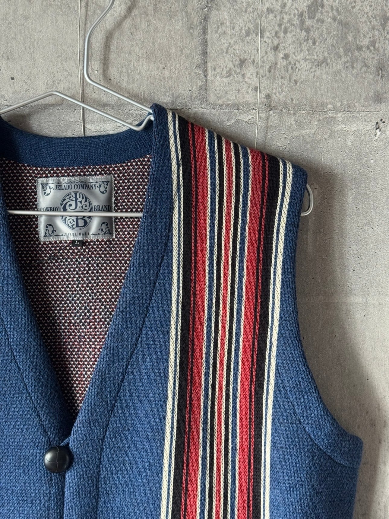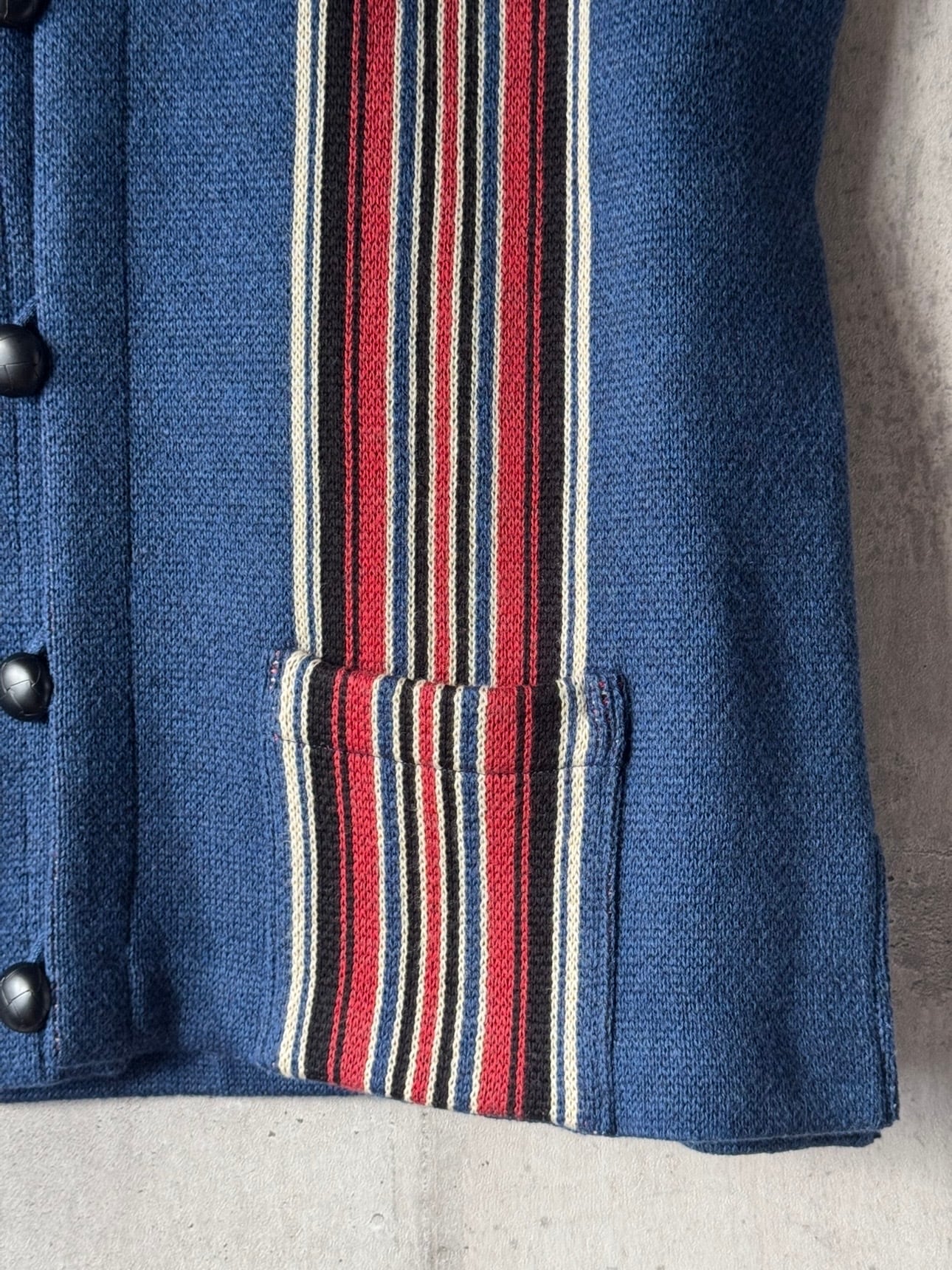 40年代以前のチマヨ生地を参考に柄を起こし、アメカジの定番であり渋カジを象徴するチマヨベストをニットで表現。ニュージーランド産ファインメリノウールとコットンを交撚した糸を使用し、ダブルジャガードで編み立てています。 膨らみのある素材