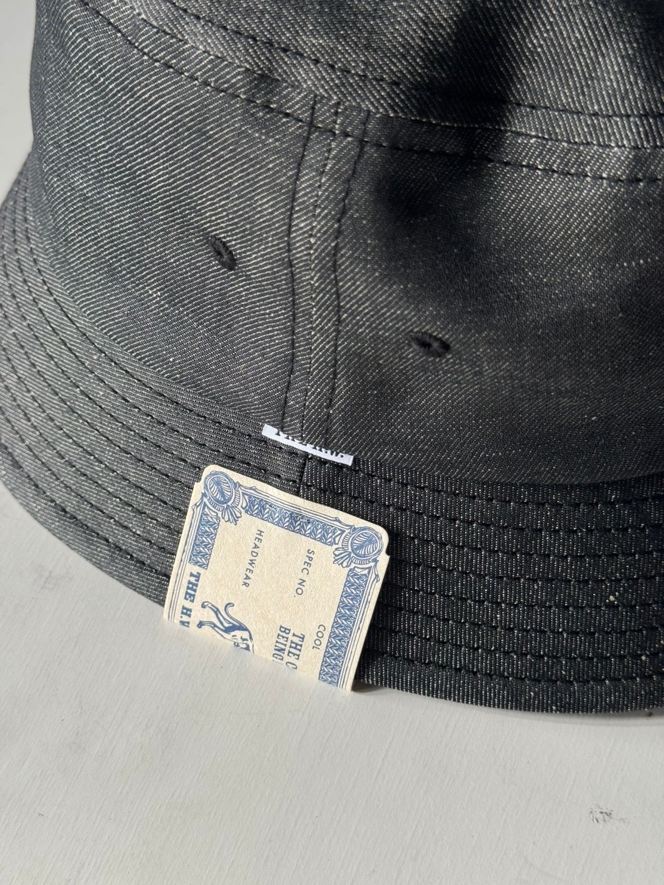 薄手のコットンリネンシャンブレー生地で成形されたバケットハット。