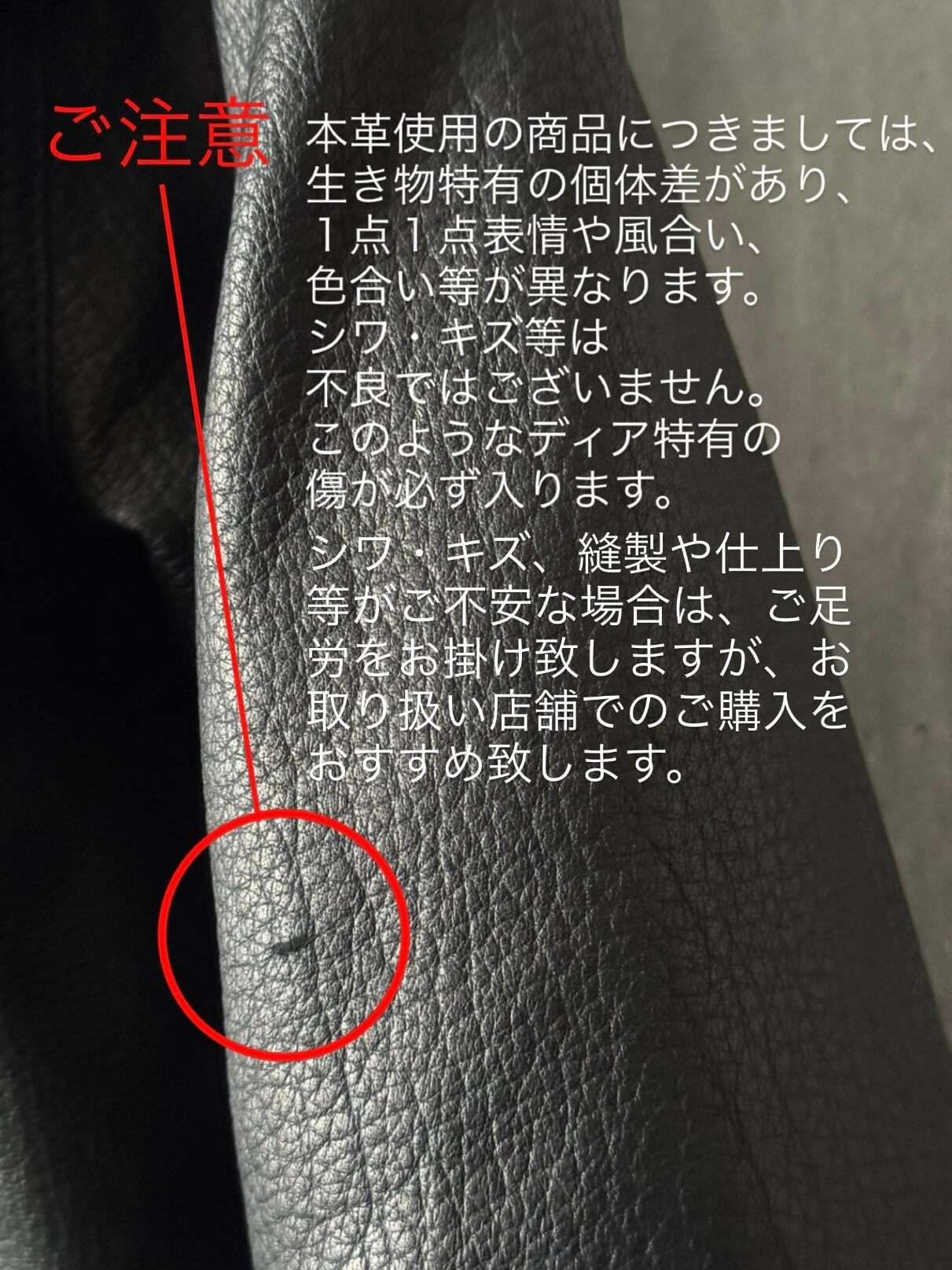 革の個体差は、不良品ではございません。