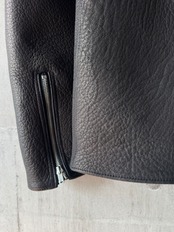 1950年代のレーシングシャツをモチーフにしたカラーレスシングルライダースジャケット。