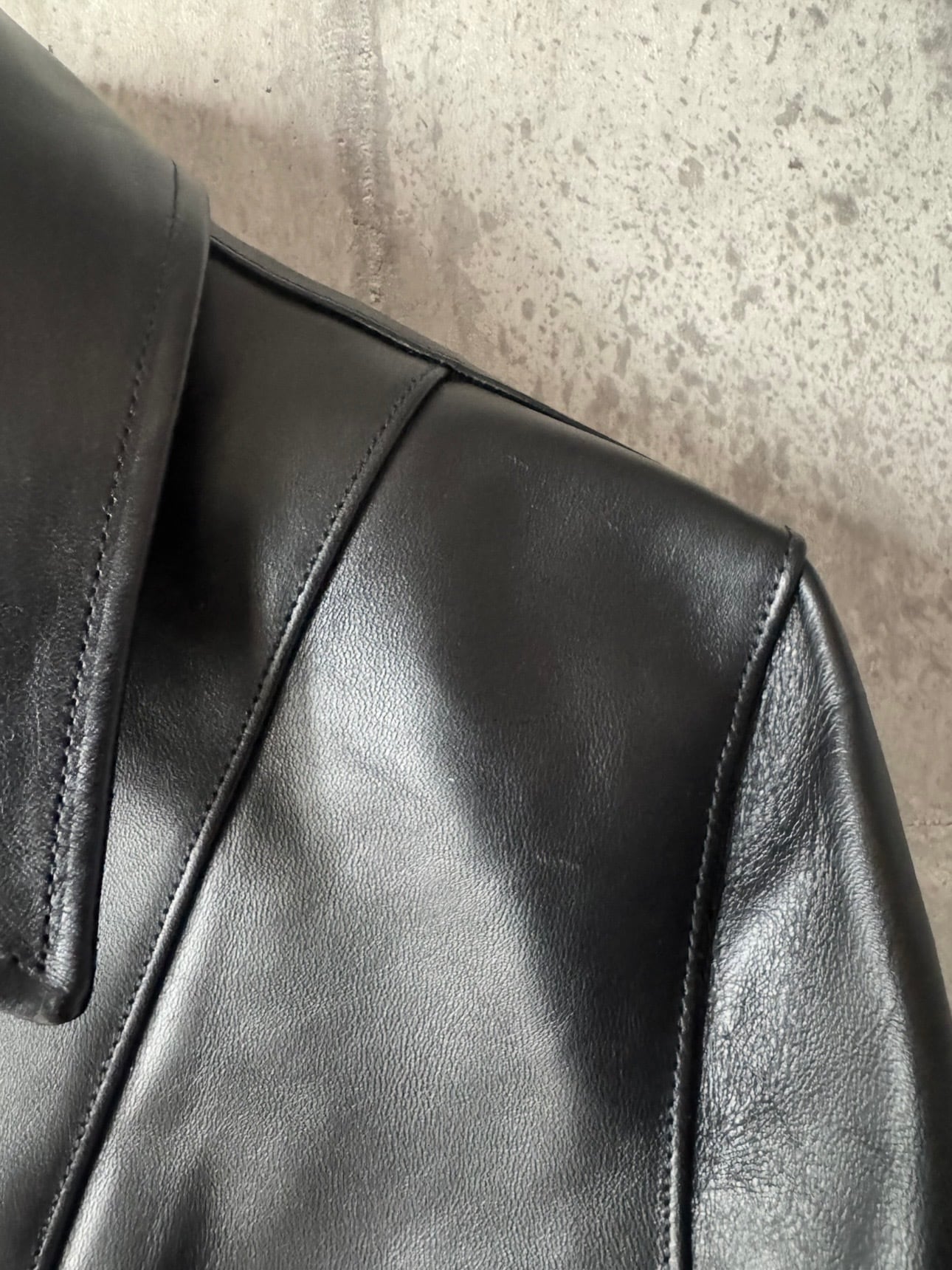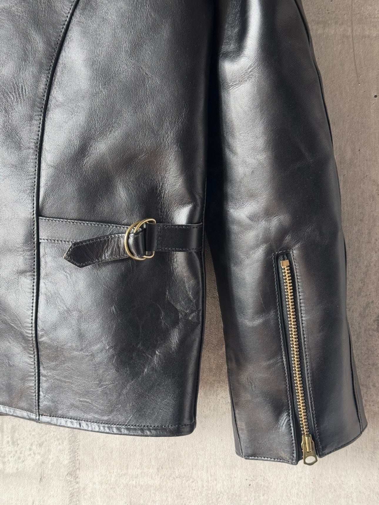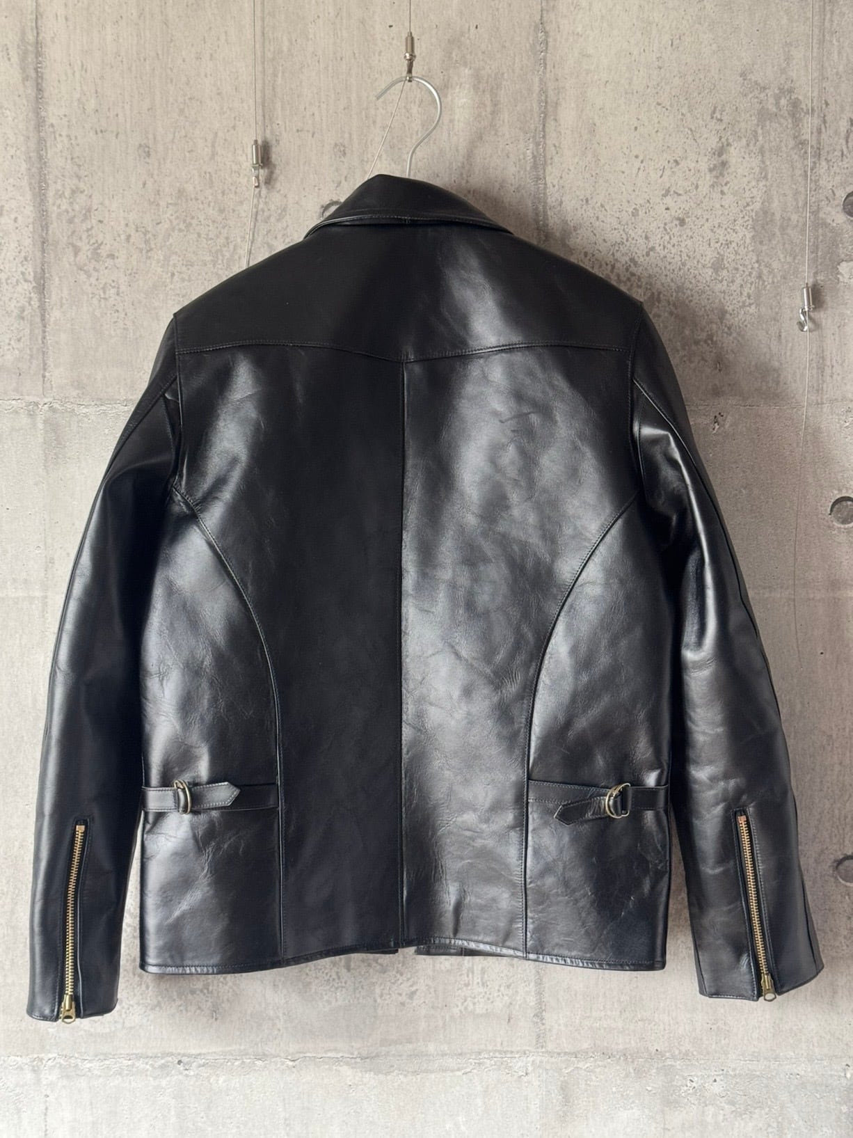 90年代に人気を博した往年の襟付きのシングルライダースを