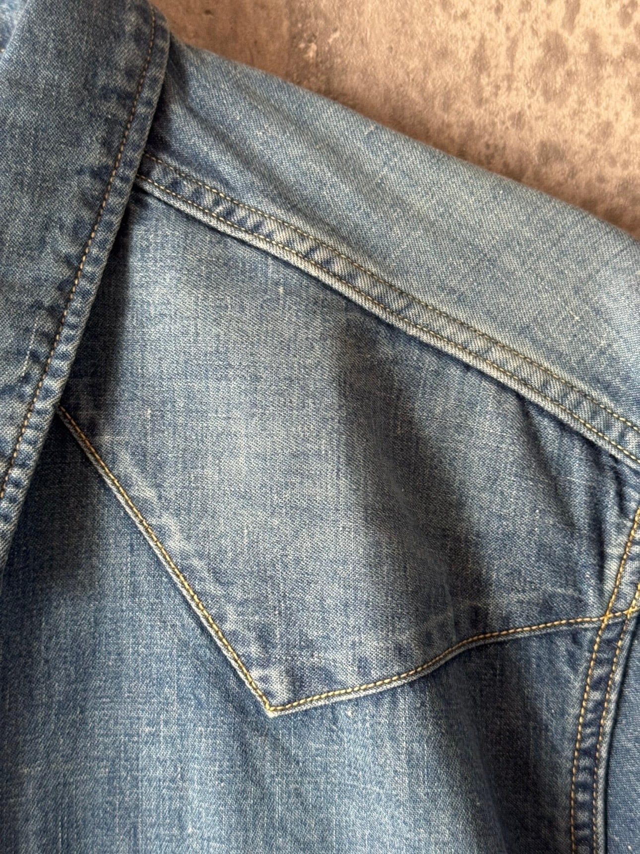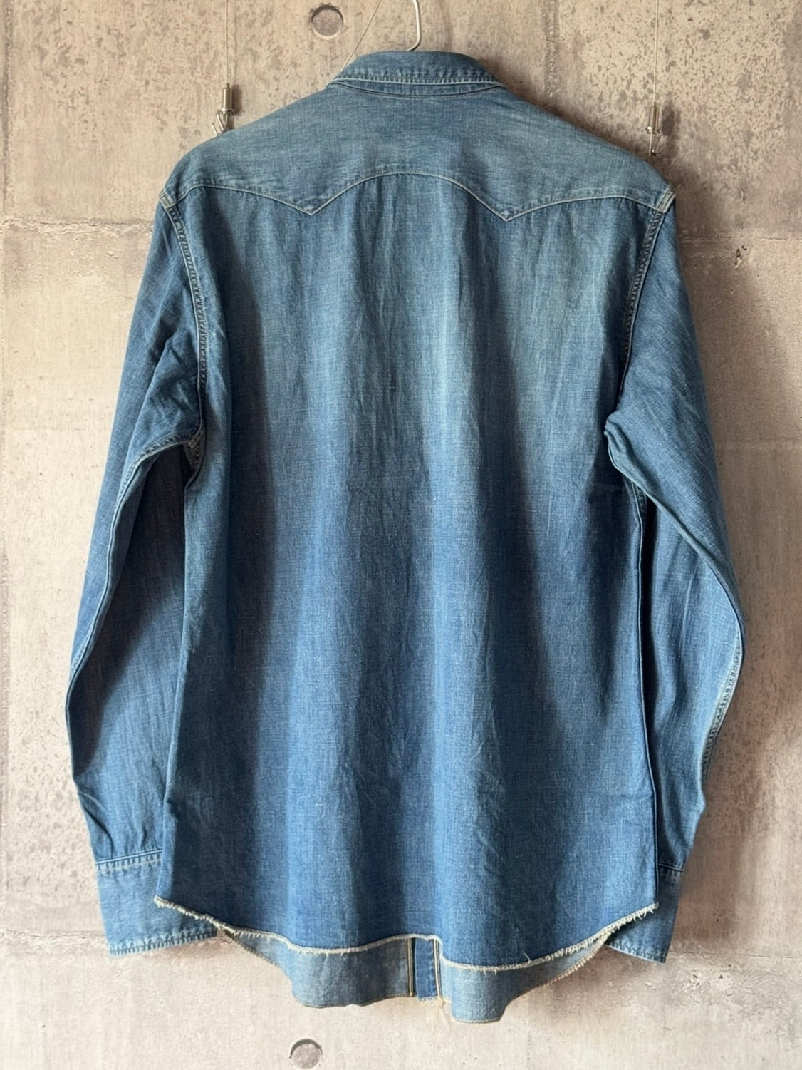 今では入手困難となったショートホーンの デニムウエスタンシャツ を再現した本作は、