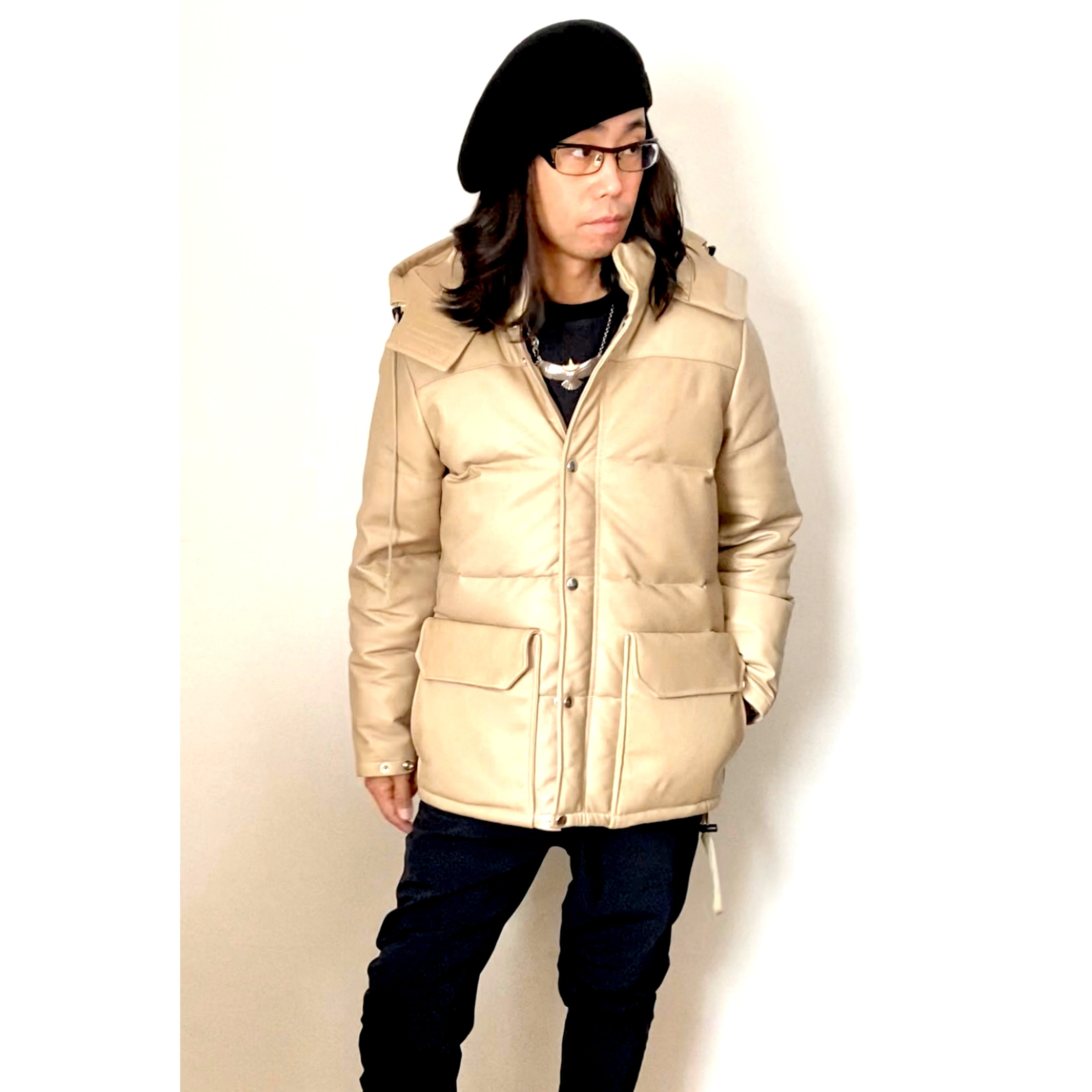 中にはダウン80% フェザー20%が入っており、外側のレザーにも丸みの出る位、ダウン量の多い仕上がりとなります。