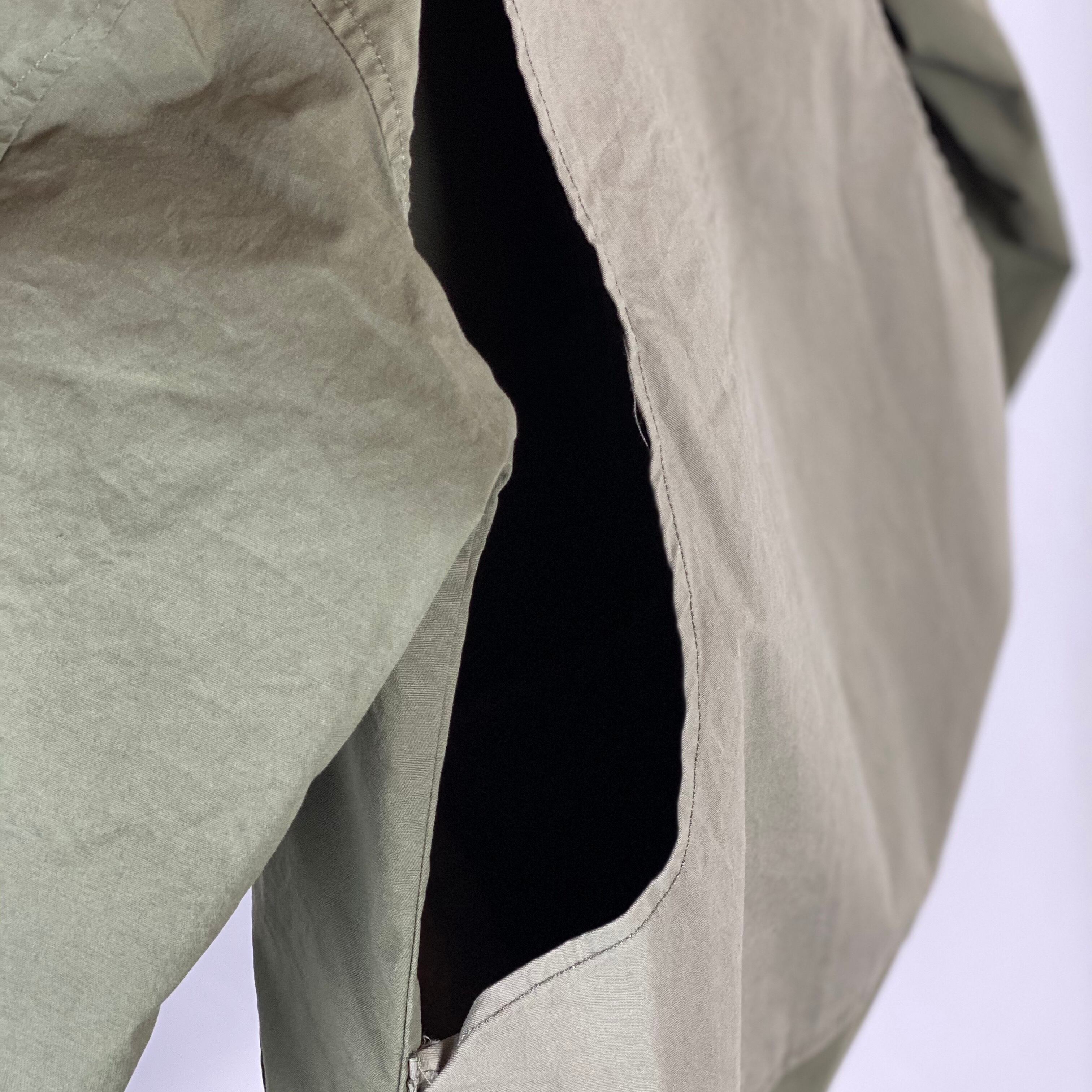 ストレッチの効いた素材なので着やすく仕上がっています。同系色で配色した色目が特徴で、後身頃には大容量の収納ポケットを施したデザインです。