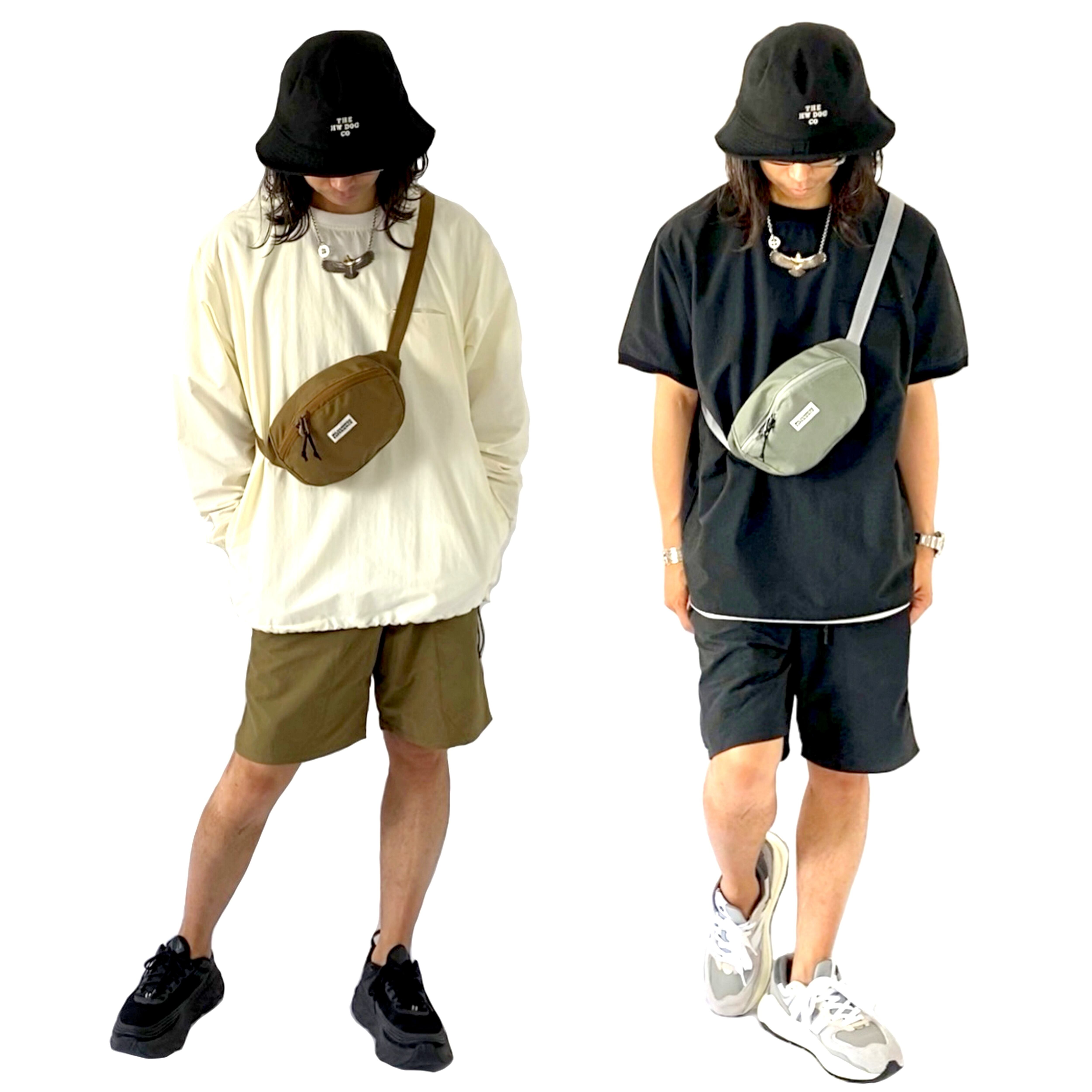 耐久性に優れたコーデュラ生地で作った丸いフォルムが特徴的なポーチ。