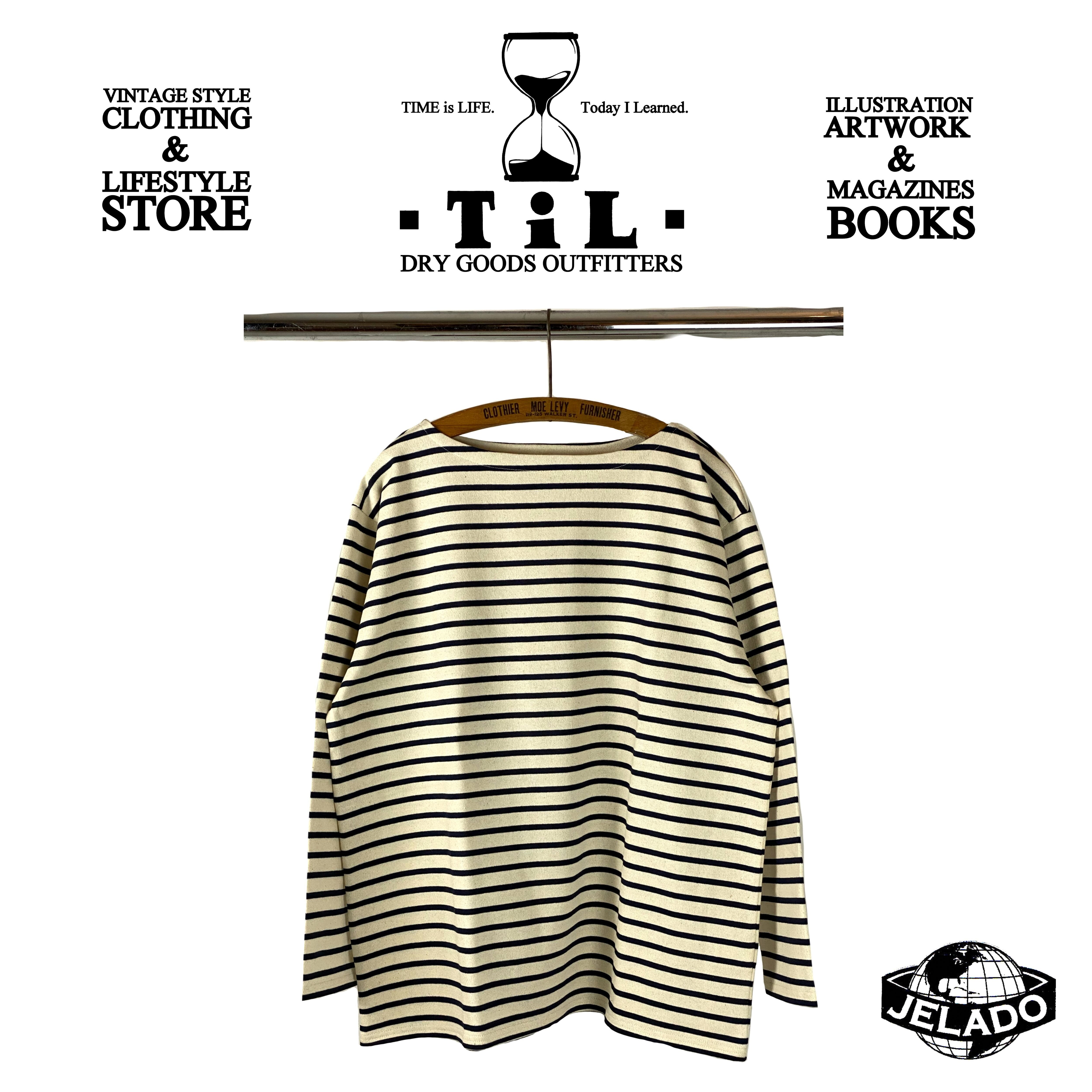 一枚でサラッと着れますが、ミリタリージャケット、テーラードジャケットのインナーにもお洒落に着れるマリンボーダーです。