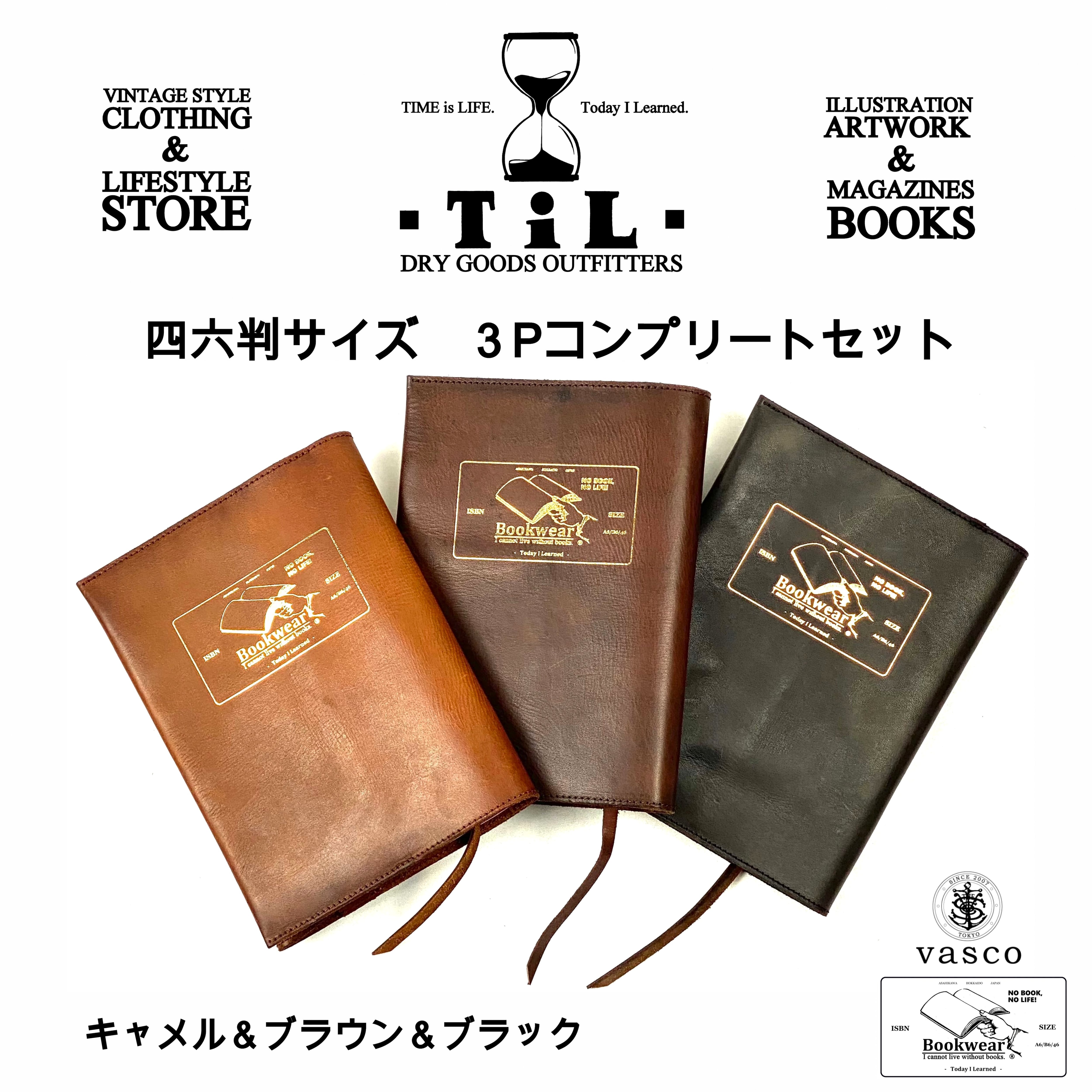 ★四六判サイズコンプリートセット(キャメル&ブラウン&ブラック)⚓︎vasco × Bookwear Wネーム ”革のブックウエア”