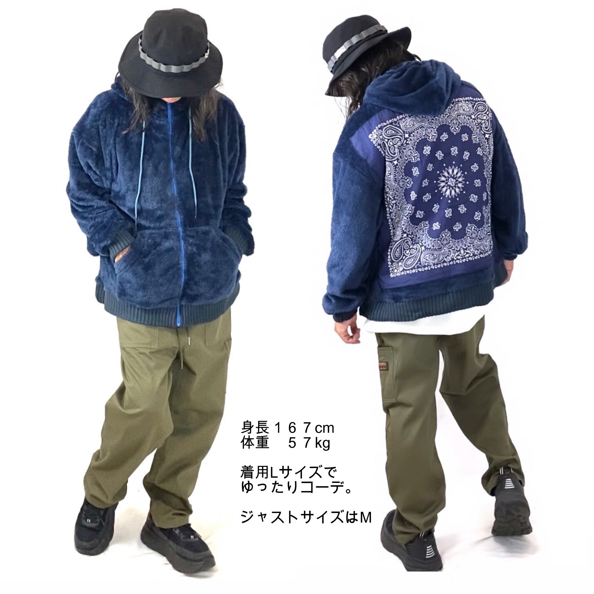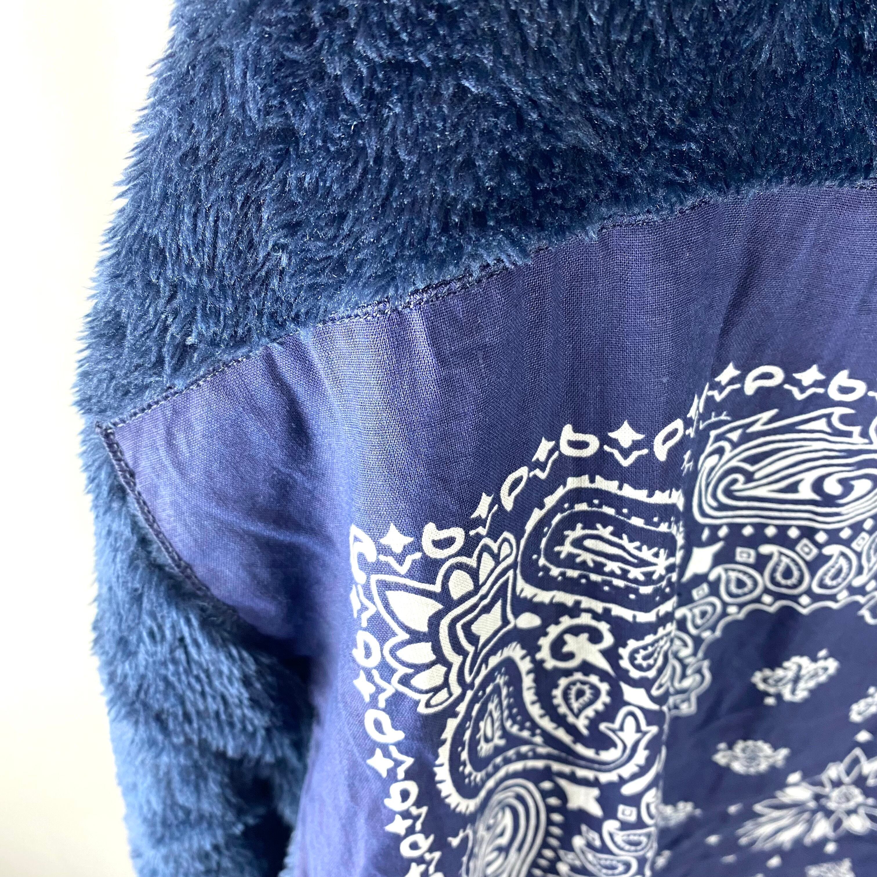 大胆にバンダナを縫い付けたボアパーカーになります。