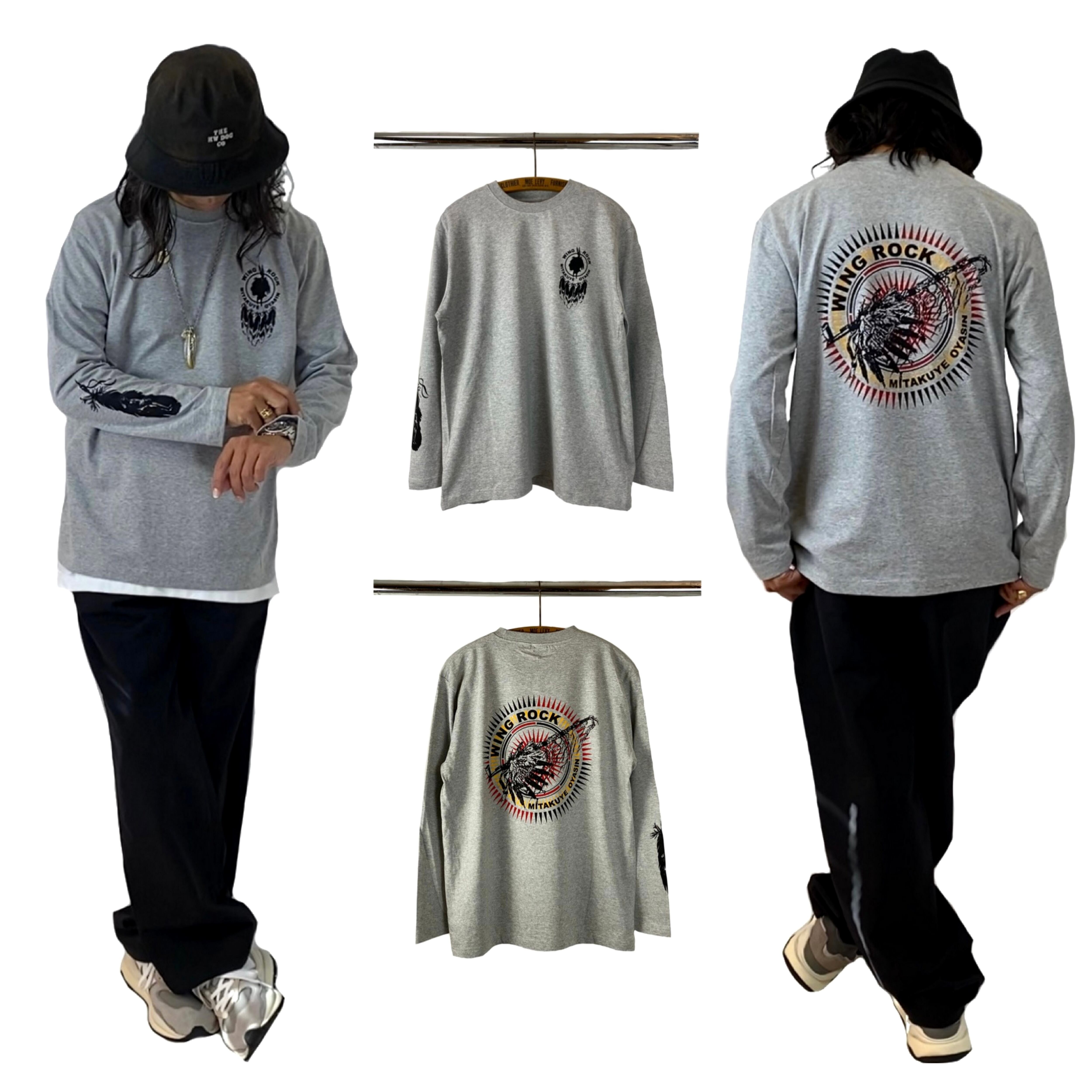 ★ XXLサイズ WING ROCK 2021 FW L/S Tee 「Peace Pipe & SUN」グレー (ウイングロック)