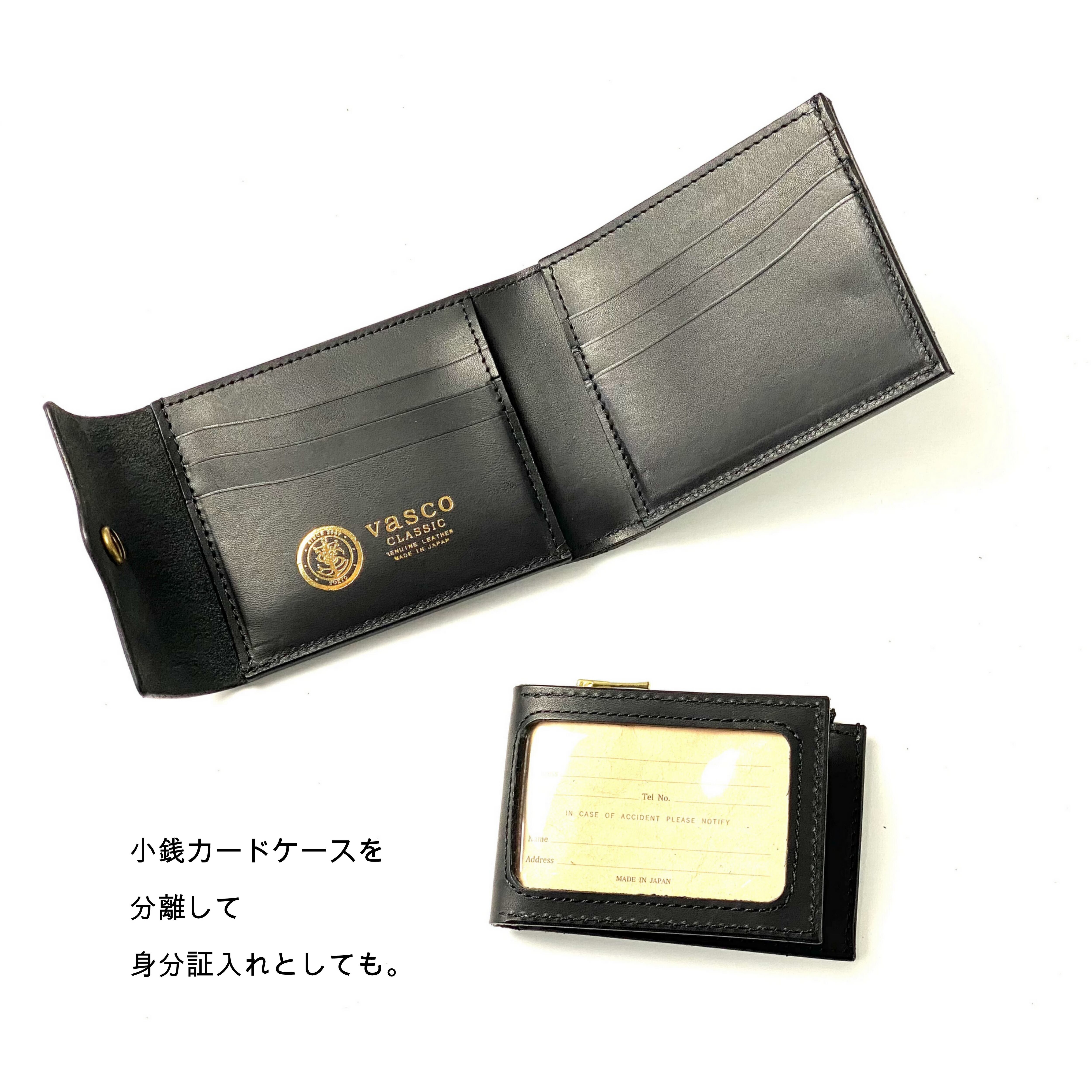 コインケースが脱着可能な、ヴァスコのレザーミドルウォレットです。