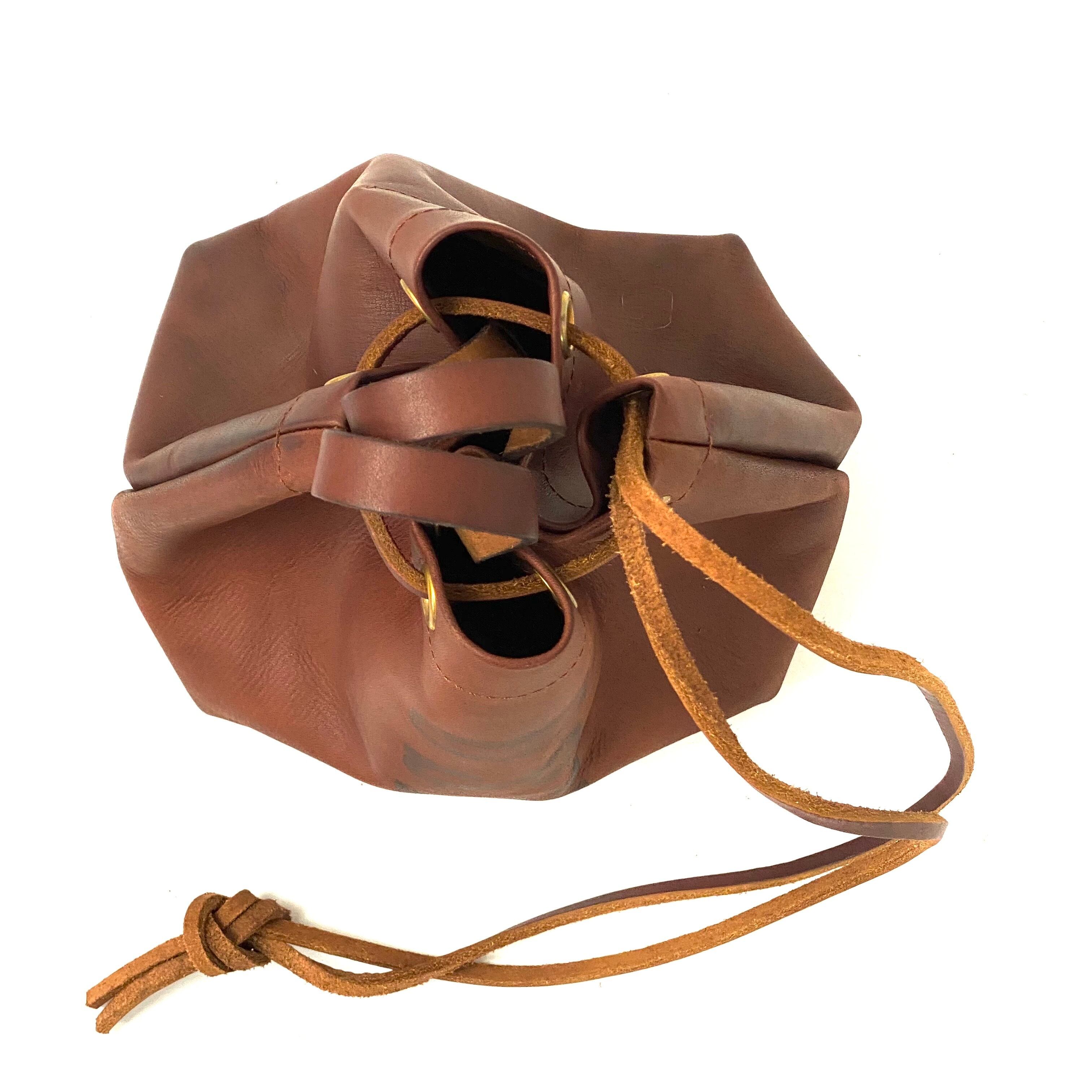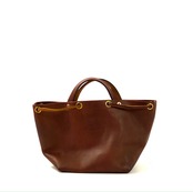 革紐をしぼったり、革紐をしぼらずにハンドルを持てばミニトート。