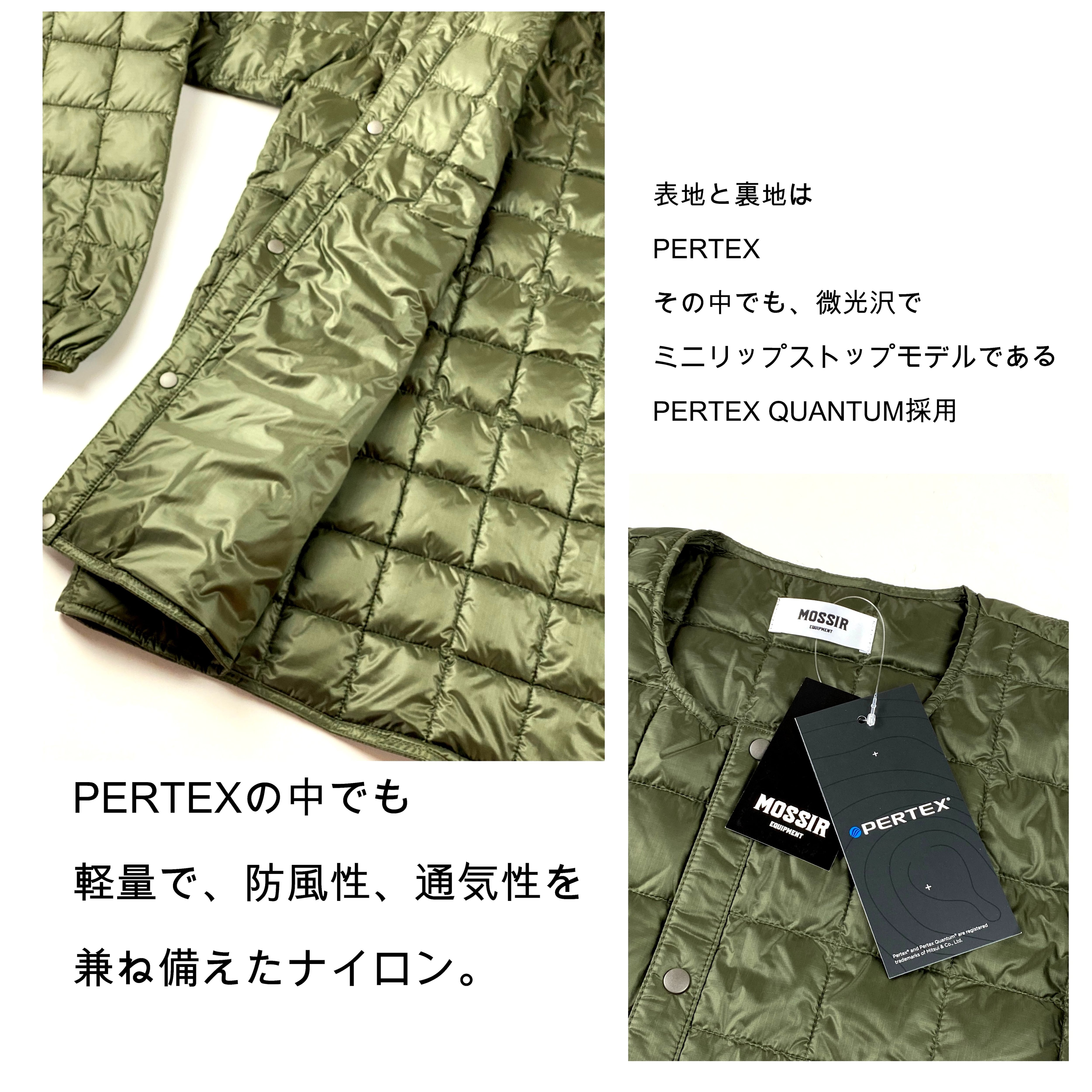 表地と裏地に"PERTEX(R) QUANTUM(パーテックス カンタム)を採用。