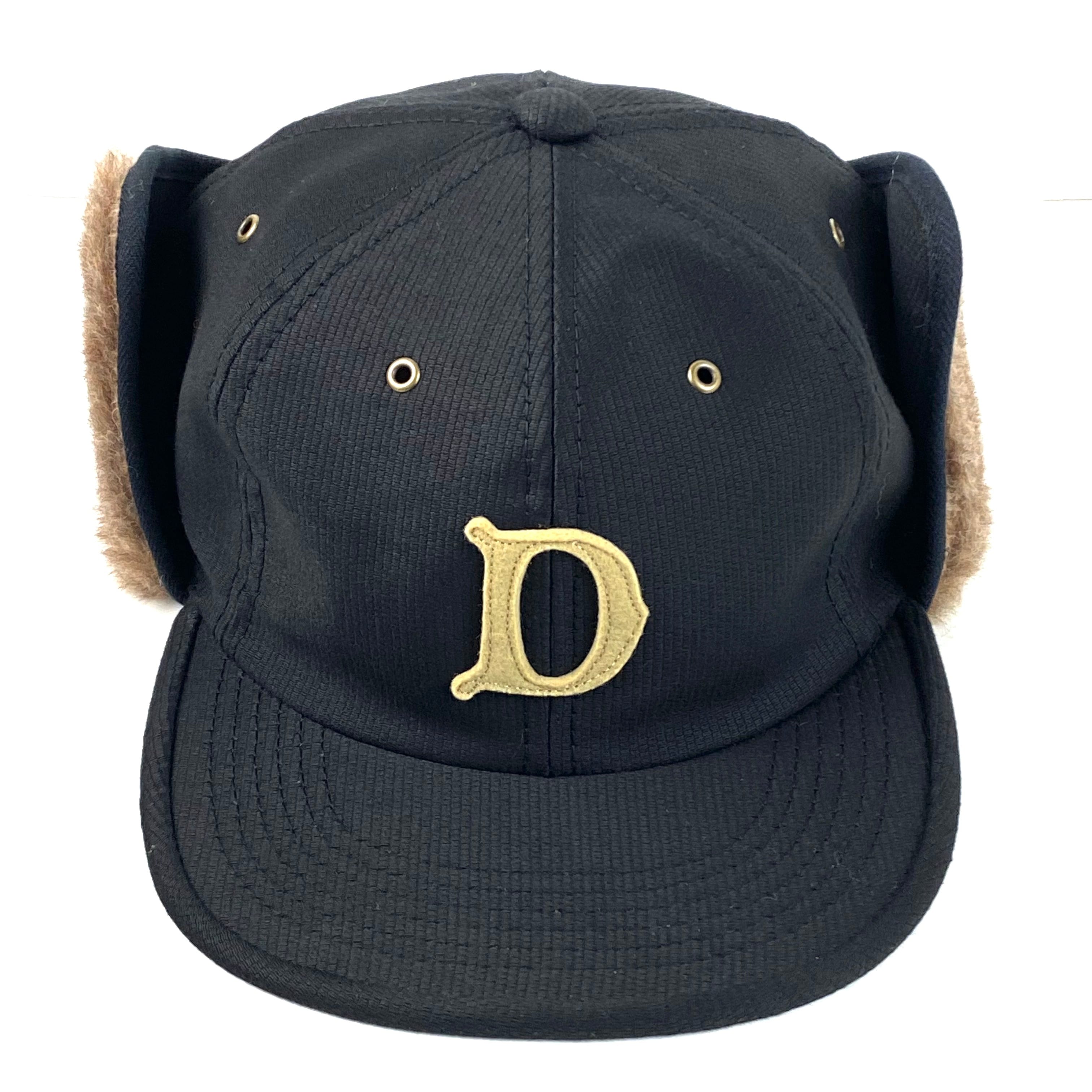シコロ付き6パネルキャップ。表地は高密度のピケ素材、シコロの裏地にはアルパカファーを使用した防寒機能に長けた帽子。フロントにはDのアップリケを施したデザイン。30年代頃のUS NAVYデッキジャケットを彷彿とさせながらもベースの形はオーセンティックで、耳当て部分は小ぶりのサイジングとヴィンテージのミリタリー要素をモダナイズしたアイテムとなっております。調整紐は無しで2サイズの展開です。