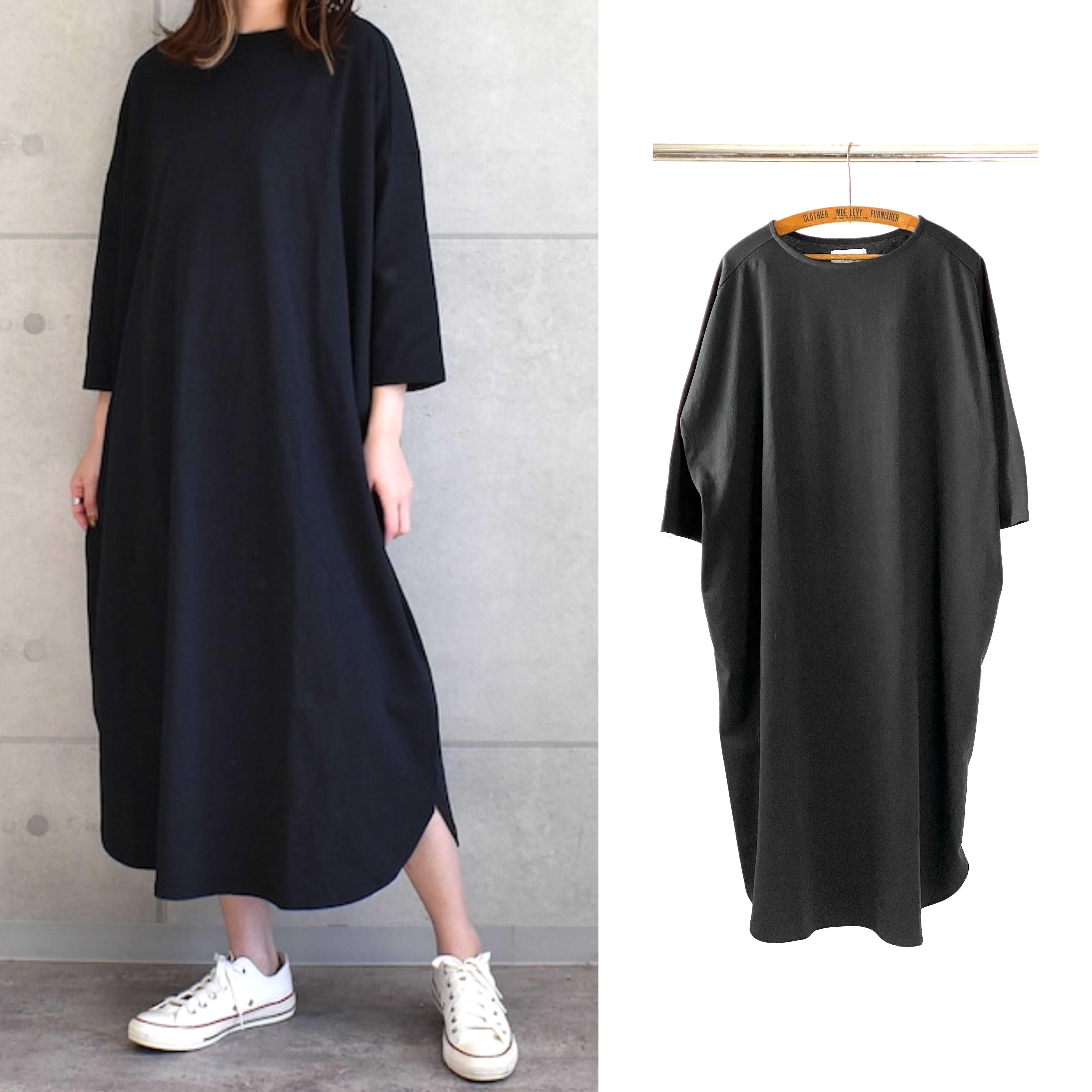 AUG ラウンドヘム T-ワンピース(ブラック)