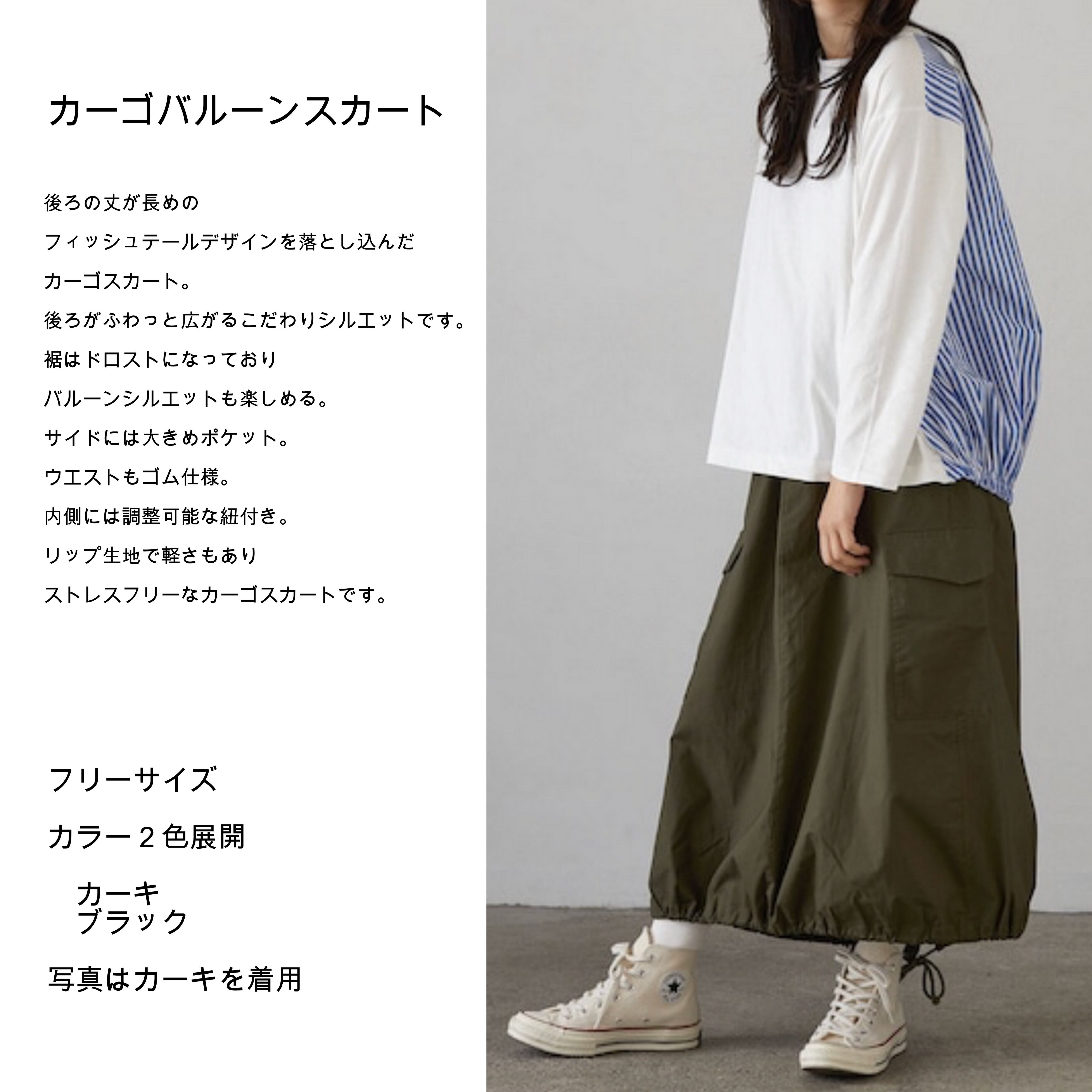 後ろの丈が長めのフィッシュテールデザインを落とし込んだカーゴスカート。