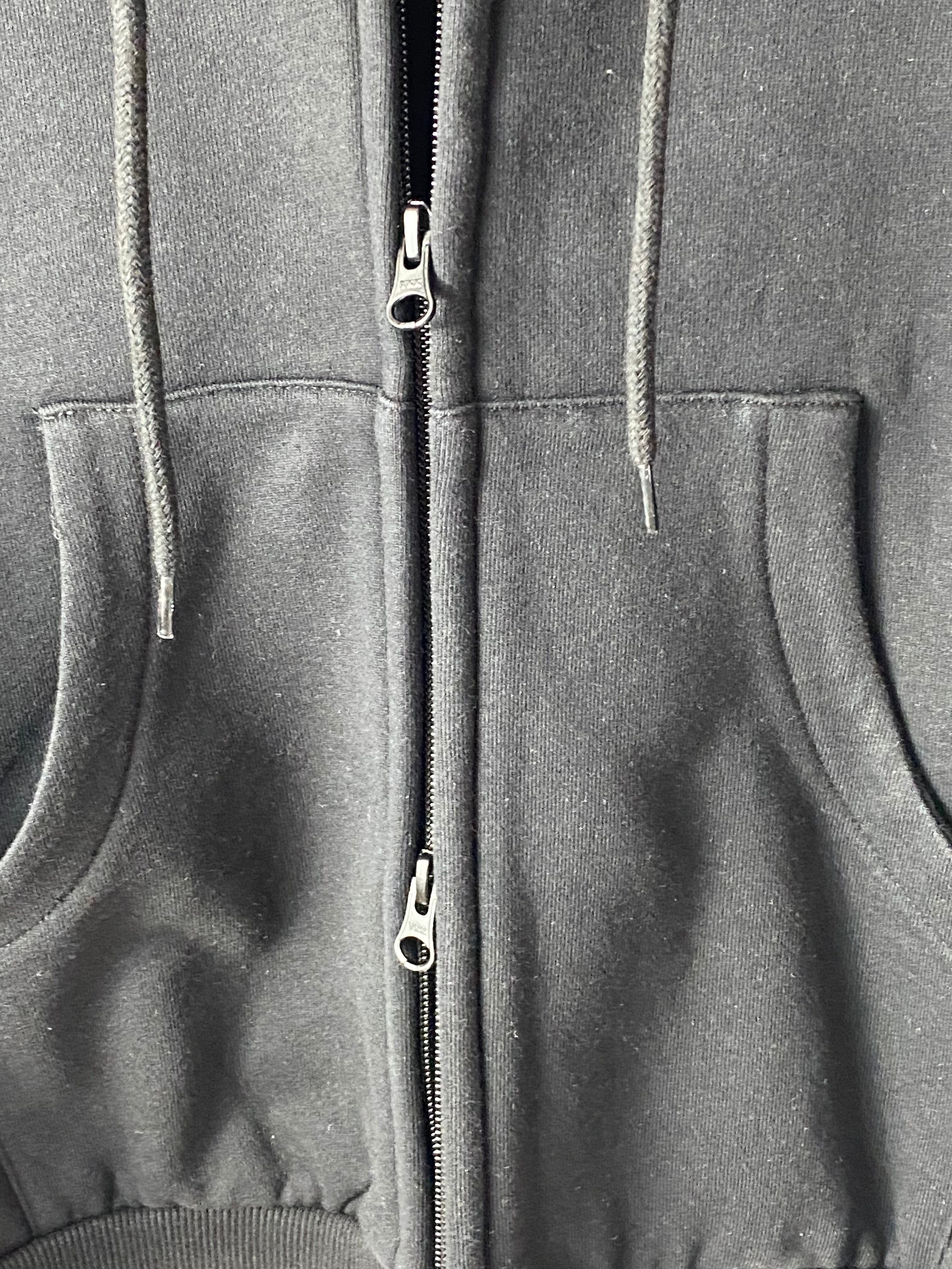 綿100%のライトウェイトの裏毛にマイクロワッフルをボンディングしたオリジナル素材を使用したジップパーカー。