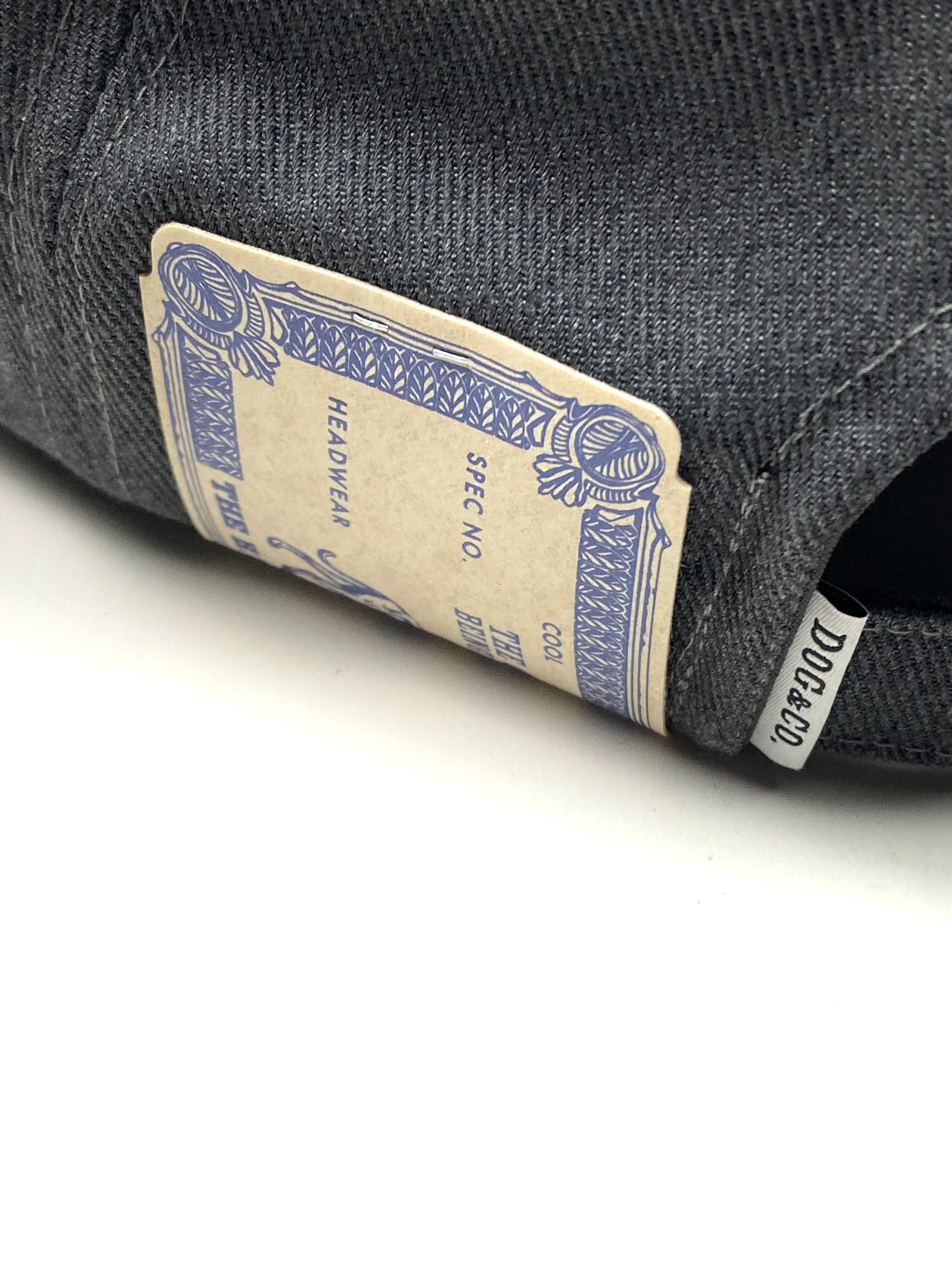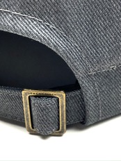 下りブリムで大きめのため目元が隠れるタイプで日除にもよくスタイリッシュなデザインにし、生地は綾織のカツラギコットンポリでざっくりとしたメンズライクな無骨さがあります。