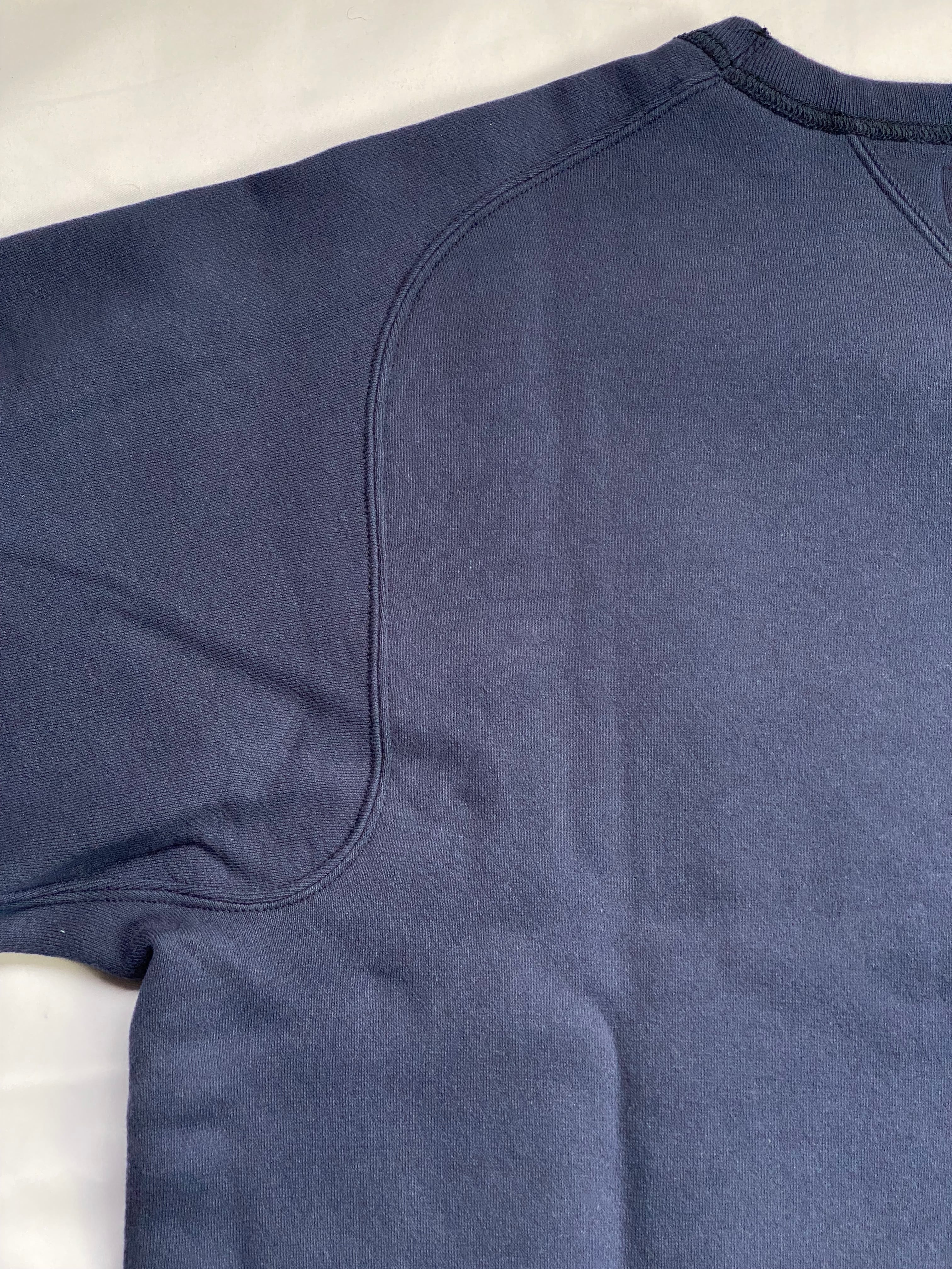 縫製ビンテージに倣いほぼ二本針ですが、袖口は丸編みリブ、袖口リブは脇下の縫製の2本針からそのまま1回でリブを付けています。当時の縫製をそのまま再現したヴィンテージではもはや手にすることは難しい一枚を再現いたしました。