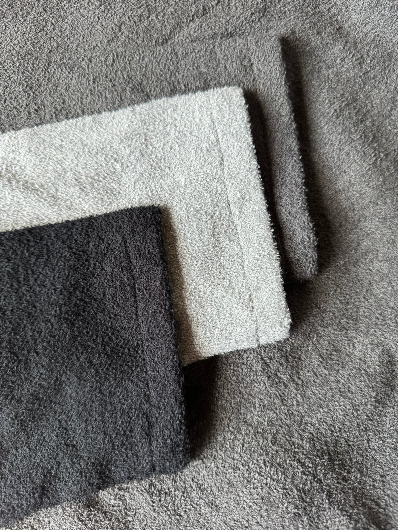 肌触り抜群のコットン85%・ポリエステル15%のパイルファブリックを使用した