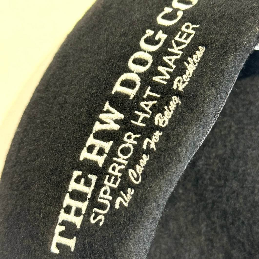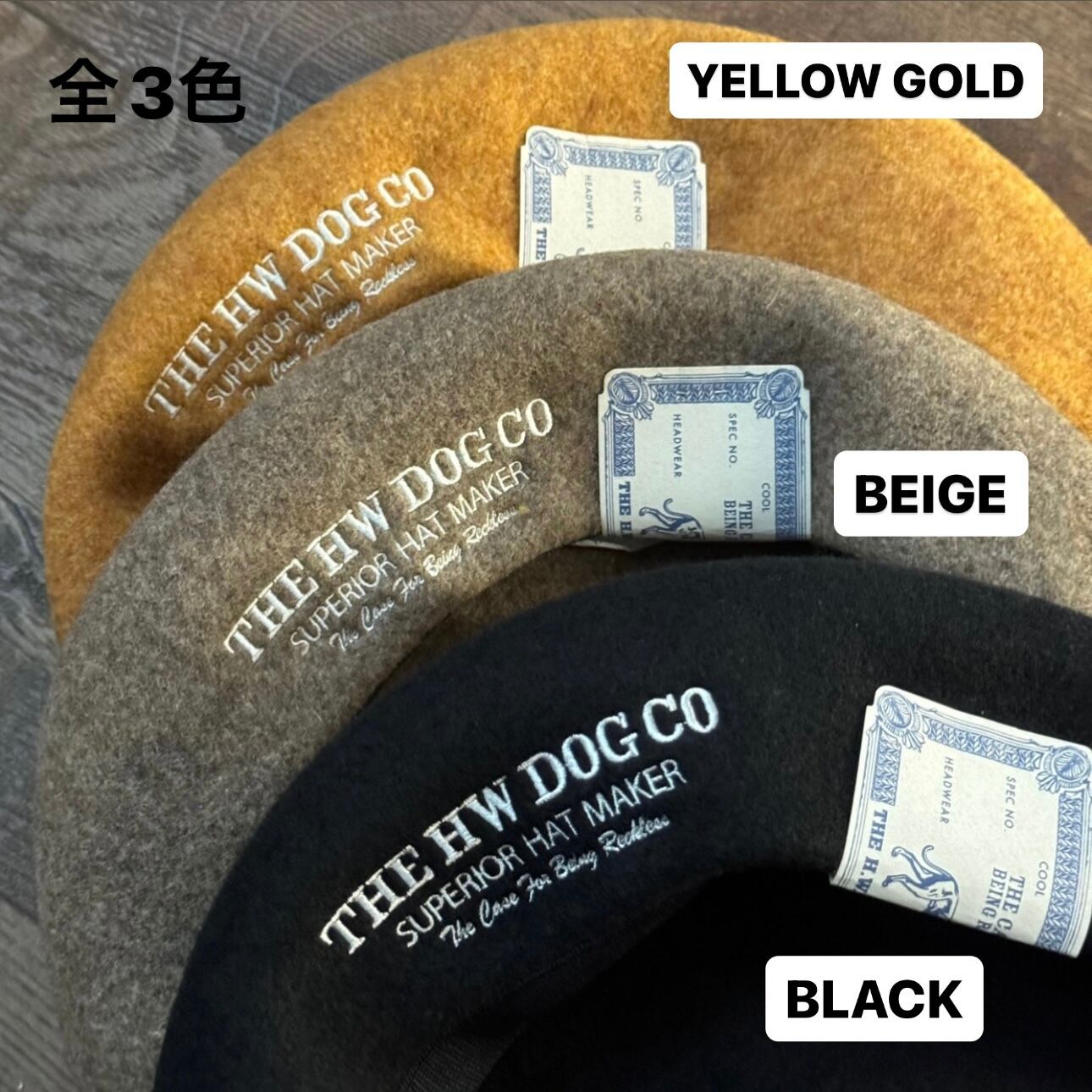 大ぶりのボリュームのあるシルエットで、被って左横に『THE HW DOG CO SUPERIOR HAT MAKER The Case For Being Reckless』の刺繍が入るデザインです。